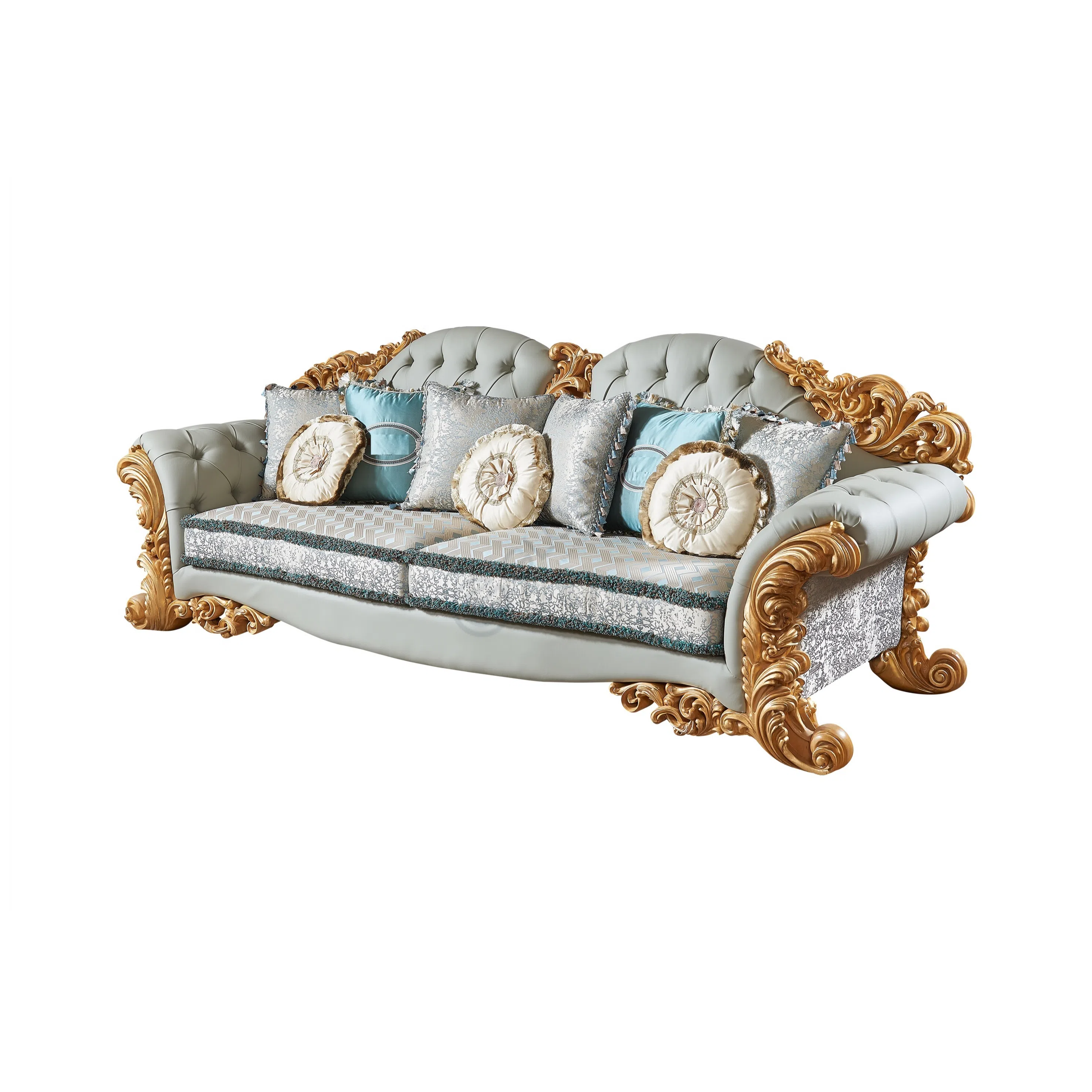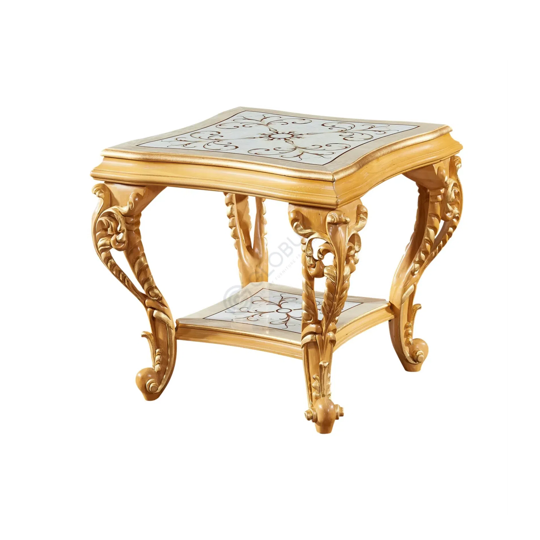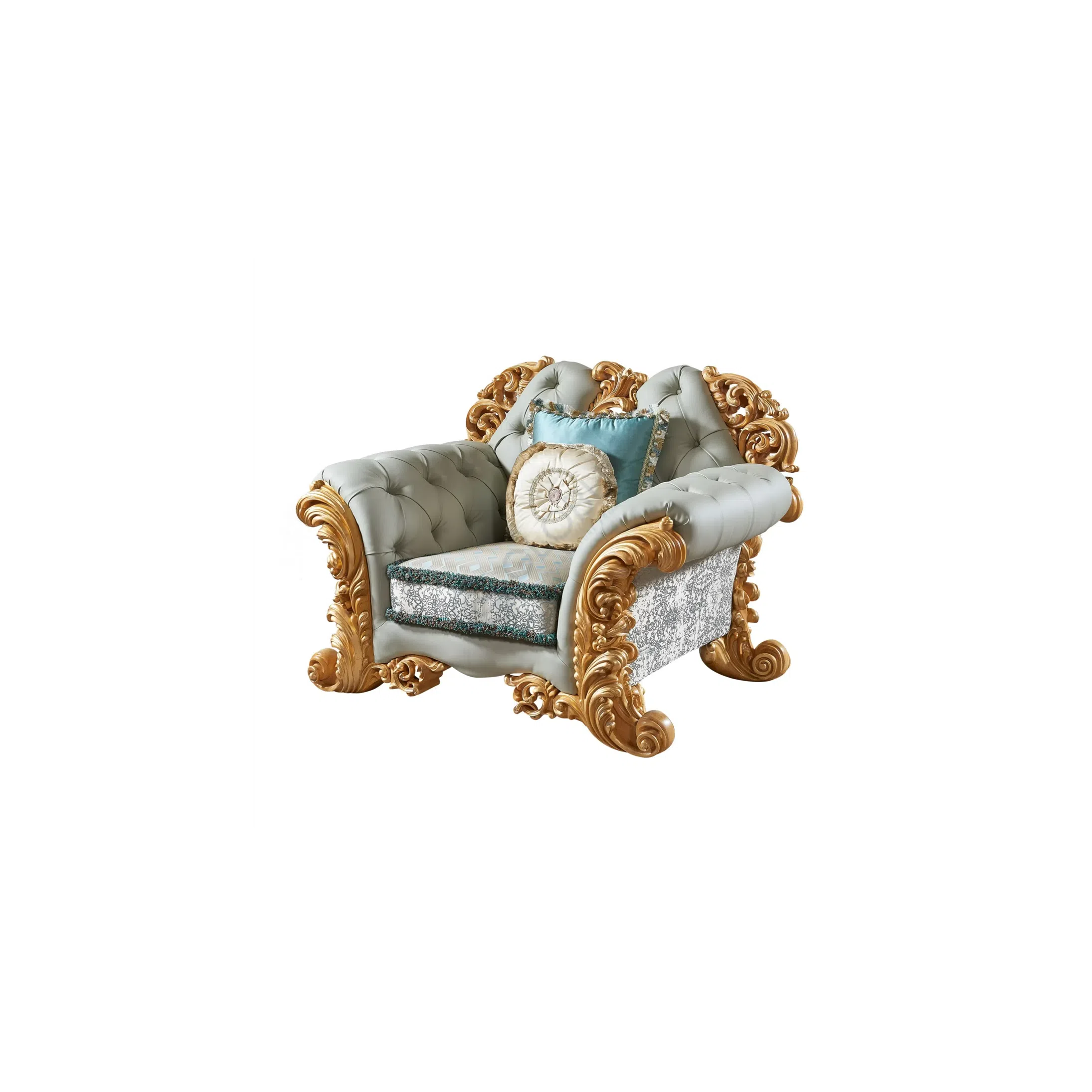 Каркас выполнен из натурального дерева, мастерски обработанного и декорированного сложным резным орнаментом. Отделка с патиной подчеркивает глубину резьбы и придает изделию благородный винтажный вид, словно оно хранит историю нескольких поколений. Сиденье и спинка обтянуты высококачественным текстилем или натуральной кожей, предлагая не только визуальное наслаждение, но и исключительный комфорт во время использования.