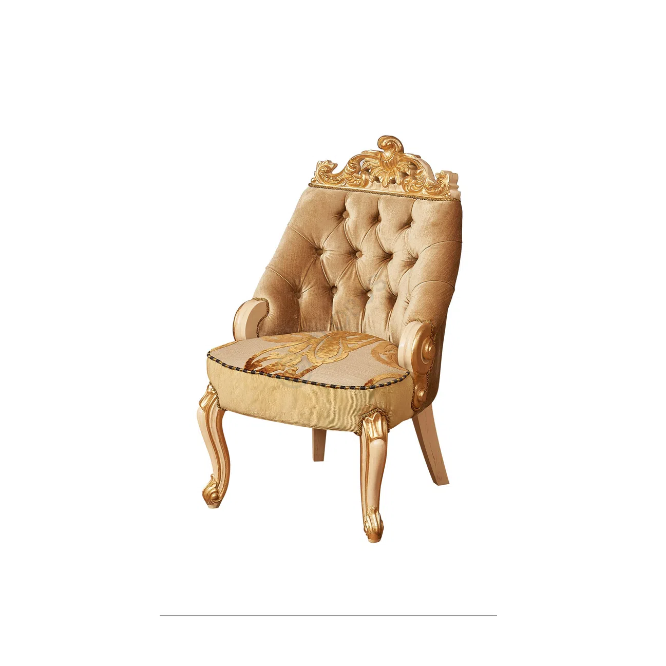 Основание столикового ансамбля представляет собой произведение мебельного искусства. Изготовленное из натурального древа с применением шпона и фанеры, оно украшено замысловатой ручной резьбой. Нежный оттенок патины подчеркивает объемные декоративные элементы, придавая им благородный винтажный вид и подчеркивая глубину линий. Дополнительная нижняя полка добавляет функциональности, предоставляя место для хранения или демонстрации декоративных предметов.