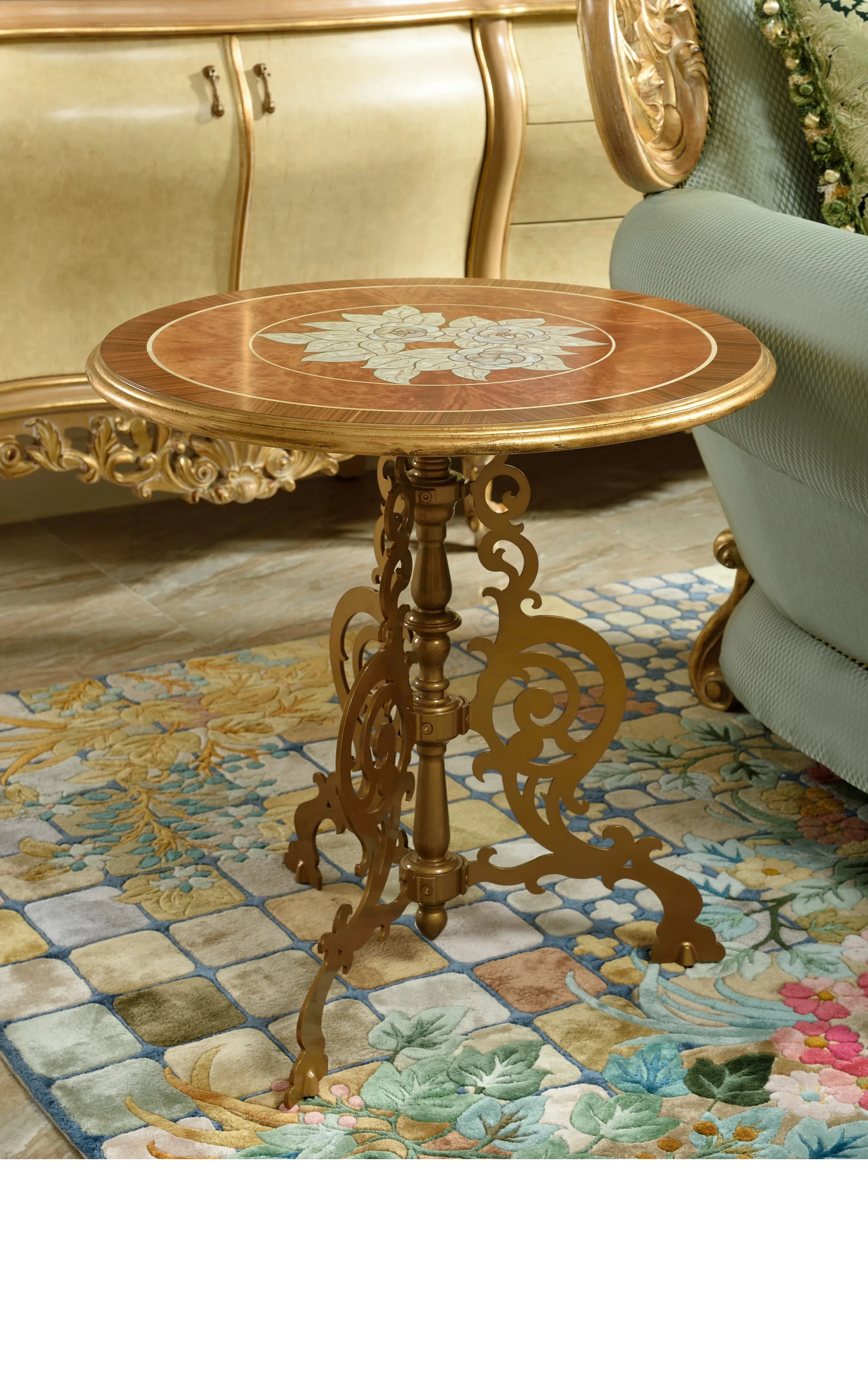 Основа изделия выполнена из натурального дерева и прочной фанеры, обеспечивая надежность и долговечность конструкции. Декоративные элементы каркаса, такие как резные ножки и подлокотники, искусно украшены тонкой патиной или позолотой, подчеркивая мастерство исполнения и придавая предмету антикварный шарм.