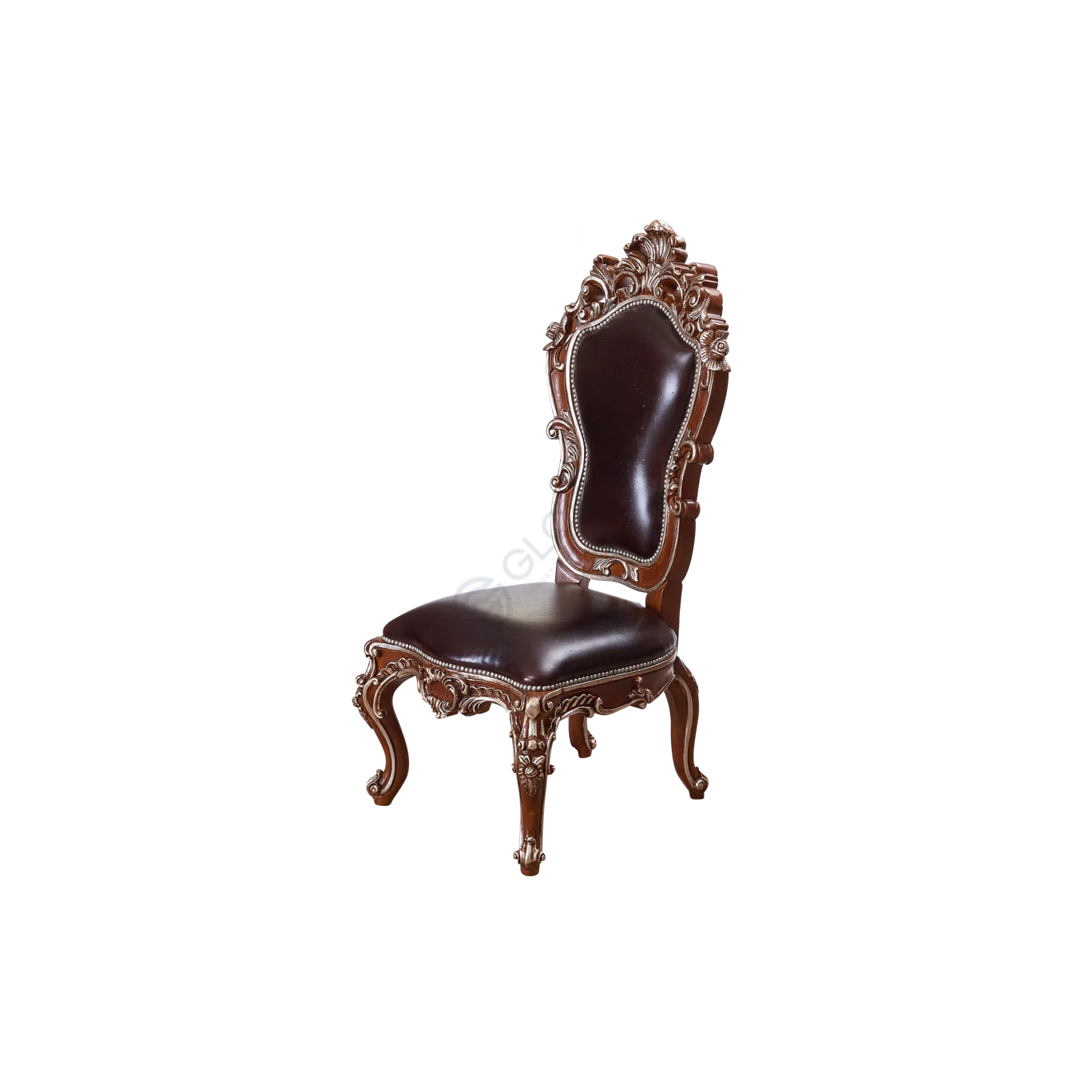 Основа изготовлена из натурального дерева и фанеры, покрытой изысканным шпоном, что придает поверхности глубокий насыщенный оттенок. Вершину венчает столешница из натурального мрамора, чьи уникальные прожилки добавляют роскоши и благородства. Декоративные элементы украшены патиной, подчеркивающей объем и рельефность узоров.