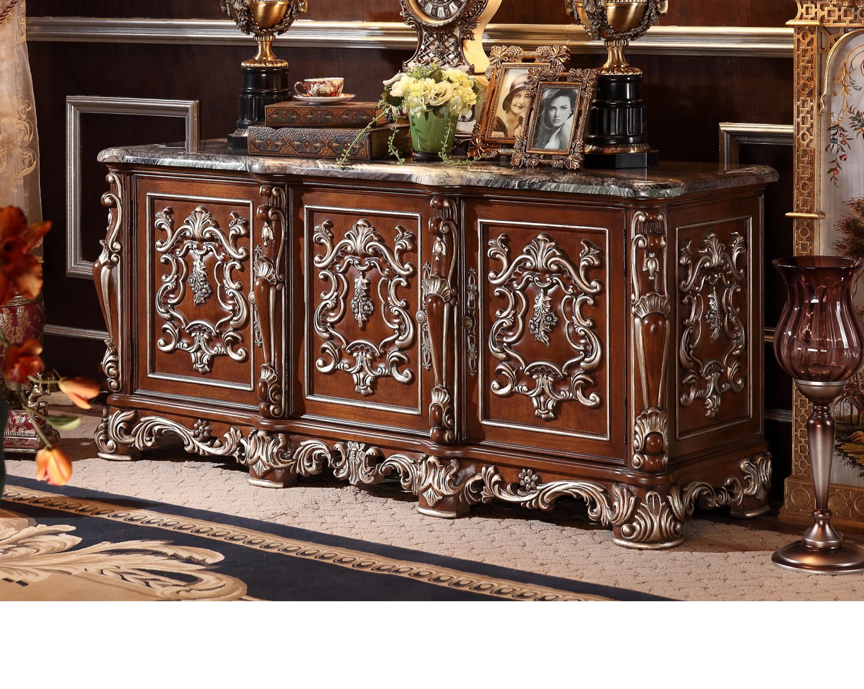 Вершину этого великолепного комода венчает плита из натурального мрамора. Природная красота и уникальный рисунок камня добавляют изделию роскошный вид и подчеркивают его статус.