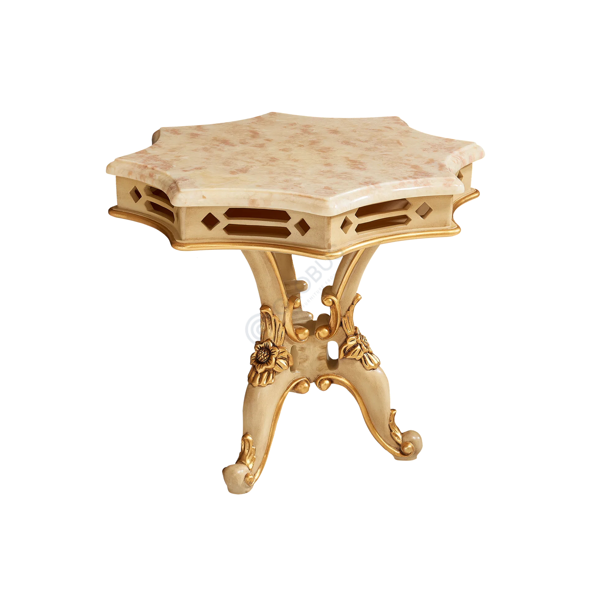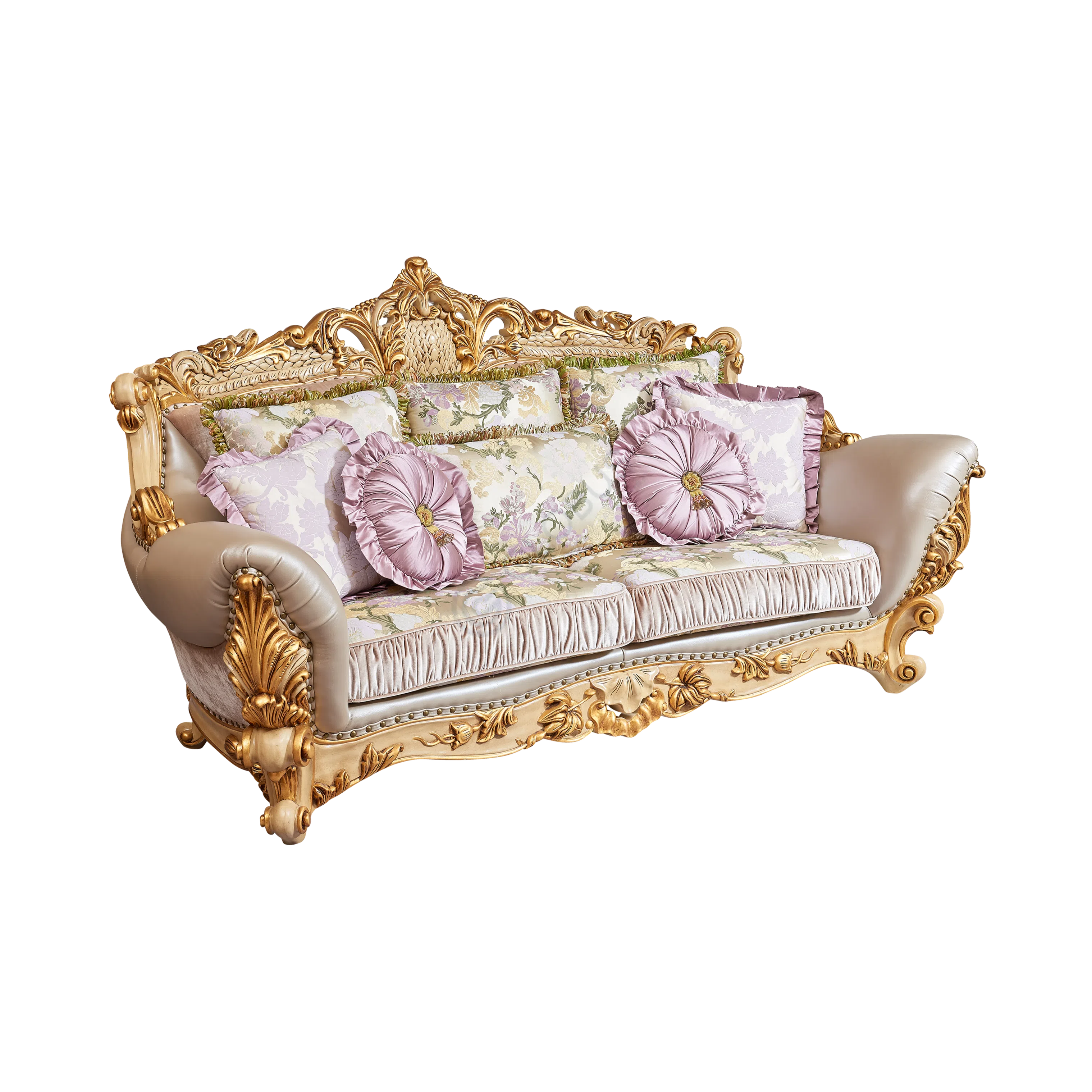 Этот предмет мебели создан с вниманием к деталям. Его основа выполнена из отборного натурального дерева и прочной фанеры, гарантируя долговечность конструкции. Отделка с использованием патины придает деревянным элементам эффект благородной старины, подчеркивая глубину резных декоративных узоров.