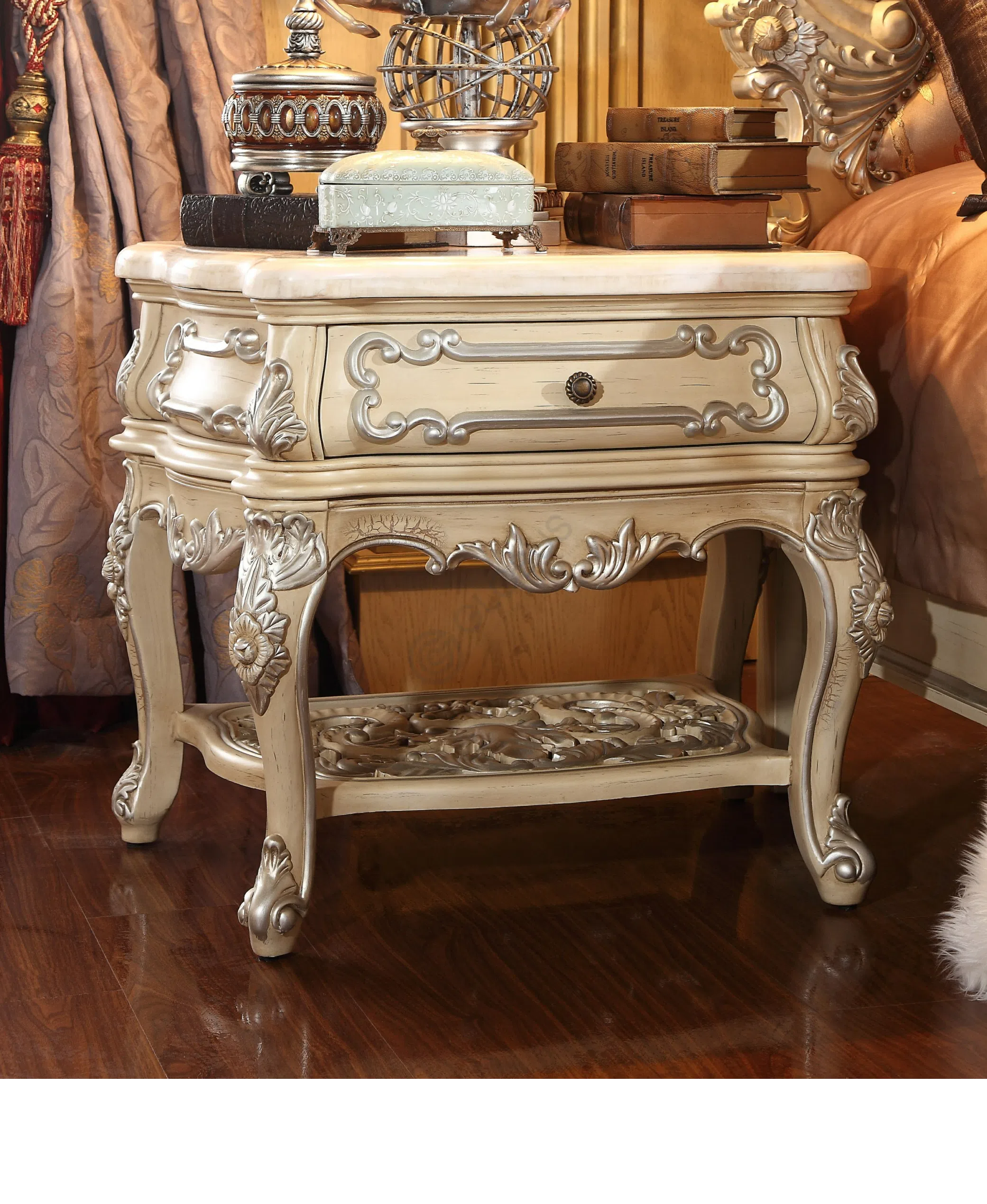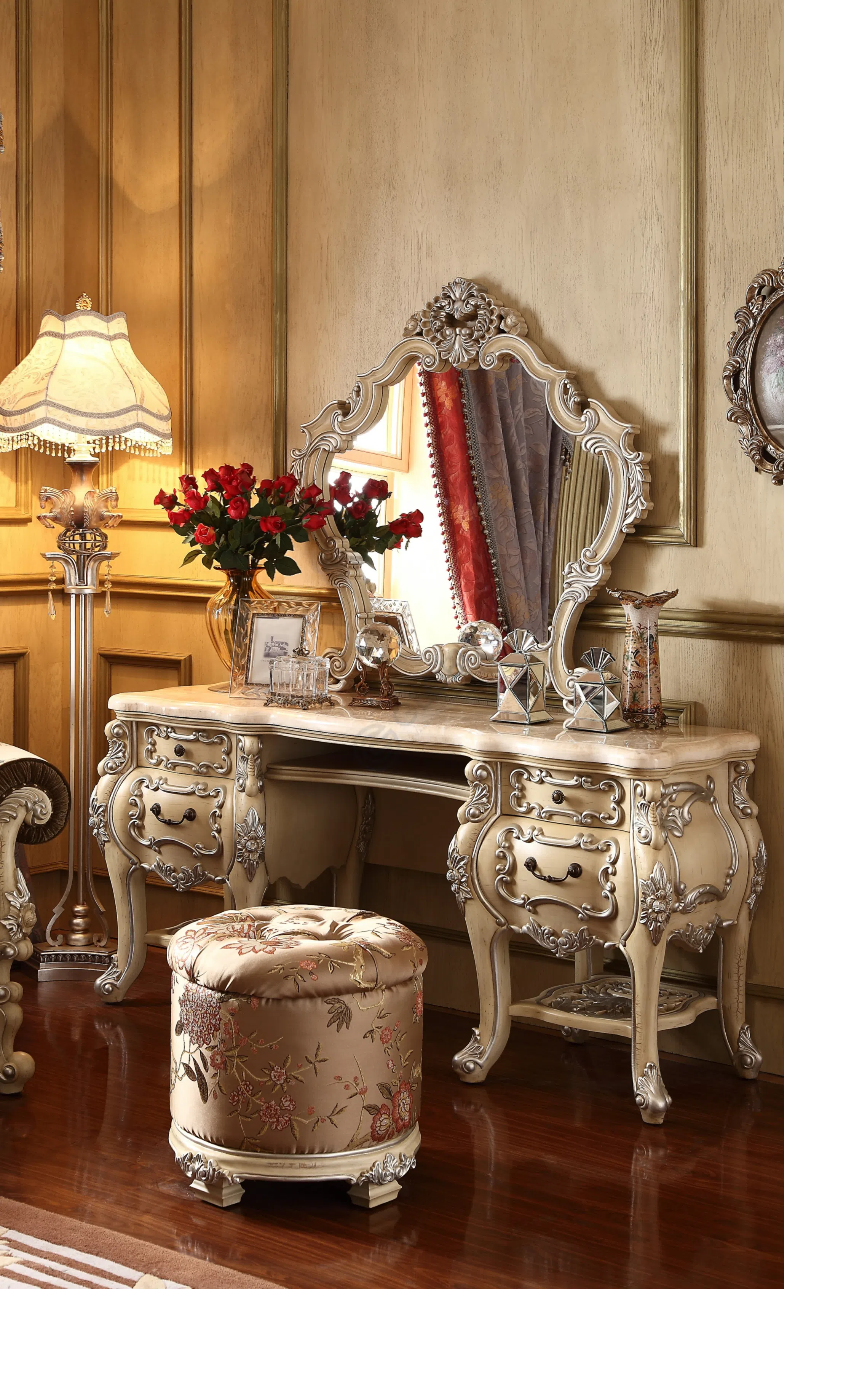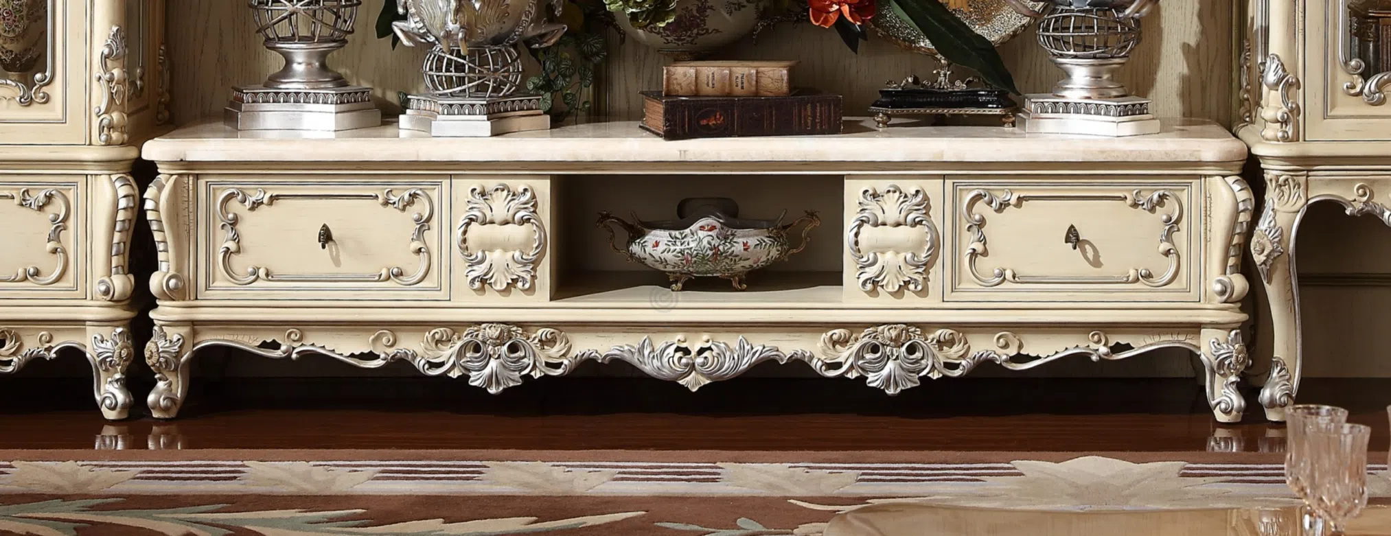 Его прочная основа изготовлена из отборного натурального дерева и фанеры, что гарантирует надежность и долговечность конструкции. Каркас декорирован искусной резьбой ручной работы, каждая деталь которой подчеркнута утонченной патиной. Это придает изделию благородный, слегка состаренный вид, наполненный историей.