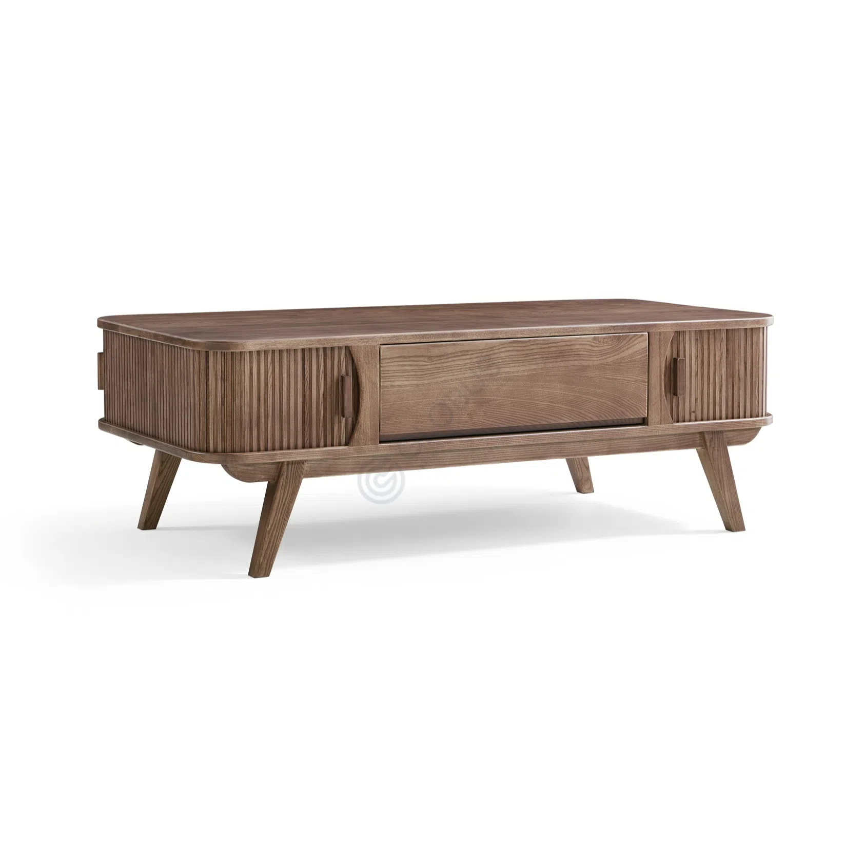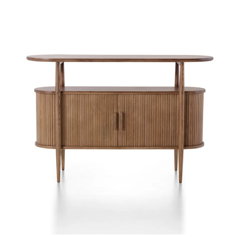 Дизайн фасада с вертикальными линиями добавляет воздушности и изящества, создавая приятную текстуру, которая идеально будет смотреться в любом современном или классическом интерьере. Ножки, выполненные в стилистике мебели середины прошлого века, подчеркивают эстетическую ценность телевизионного столика, делая его не просто местом для размещения техники, но и стильным элементом вашего дома.
