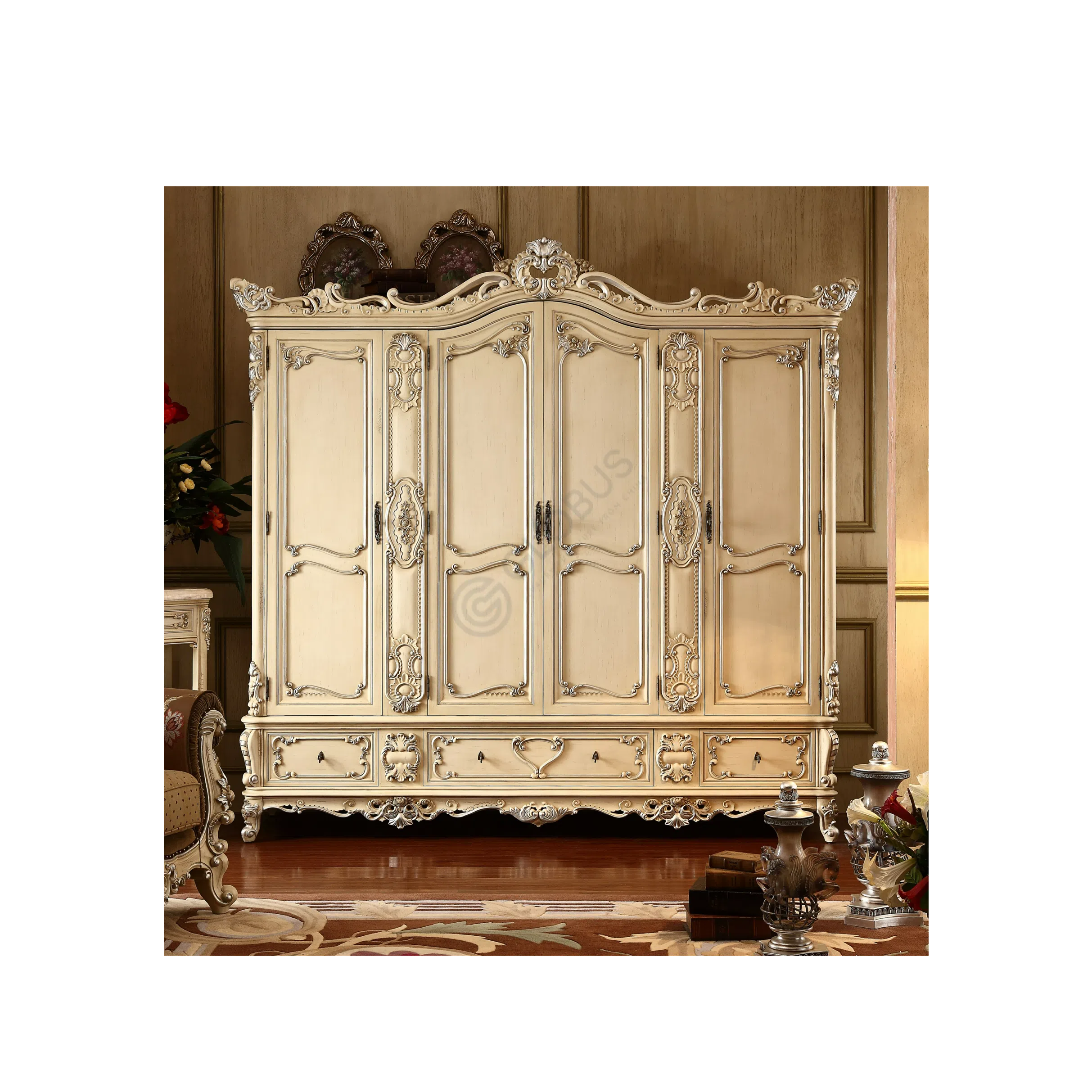 Этот предмет мебели воплощает истинную элегантность европейской классики, становясь центральным элементом пространства. Его изящный силуэт и светлое покрытие с эффектом легкой патины создают ощущение благородной старины и изысканности.