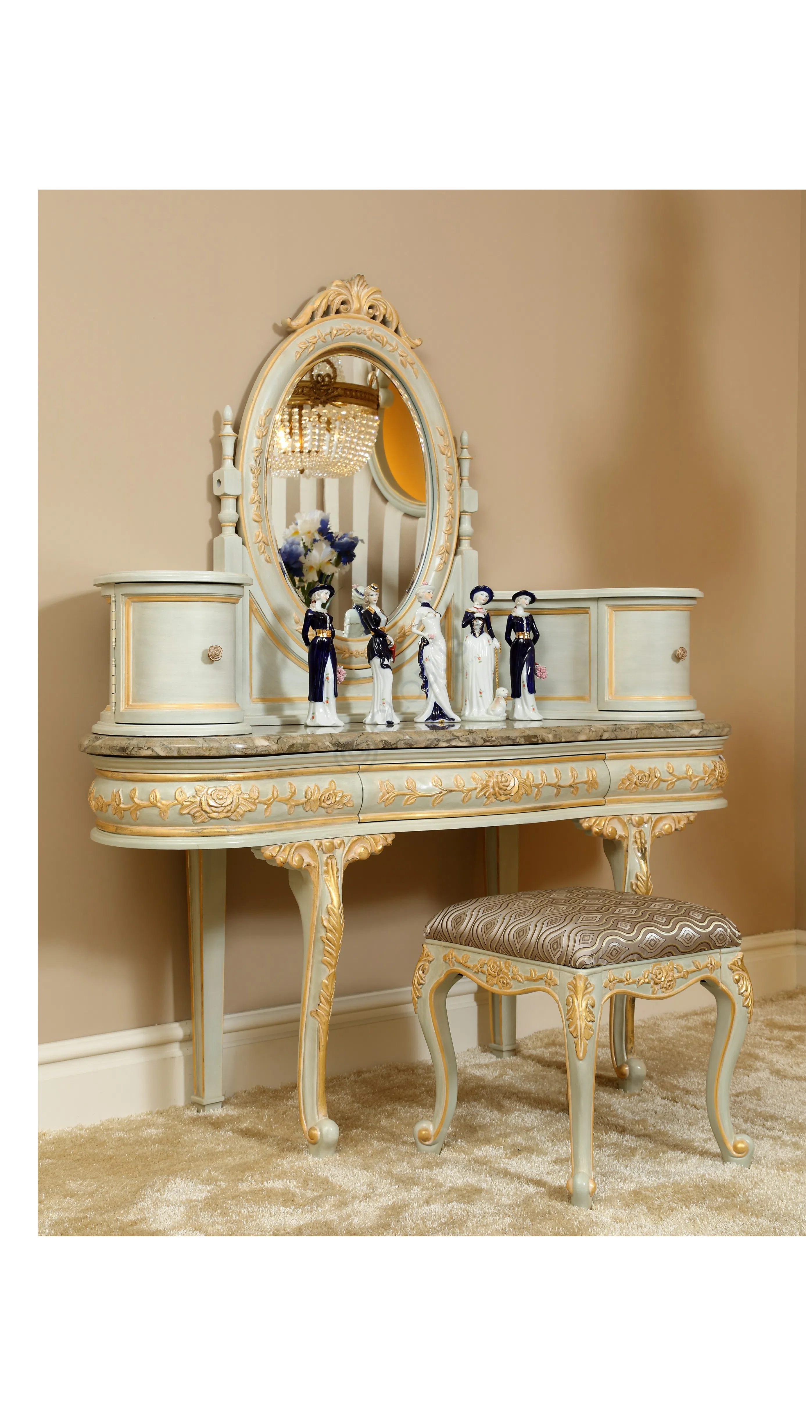 Каждая деталь консоли говорит о высоком мастерстве исполнения. Декоративные элементы, выполненные методом резьбы, украшают каркас и ножки. Золотистый акцент на резьбе и текстуре ножек подчеркивает изящество линий и придает этой консоли роскошный вид. Это не просто мебель, а произведение прикладного искусства.
