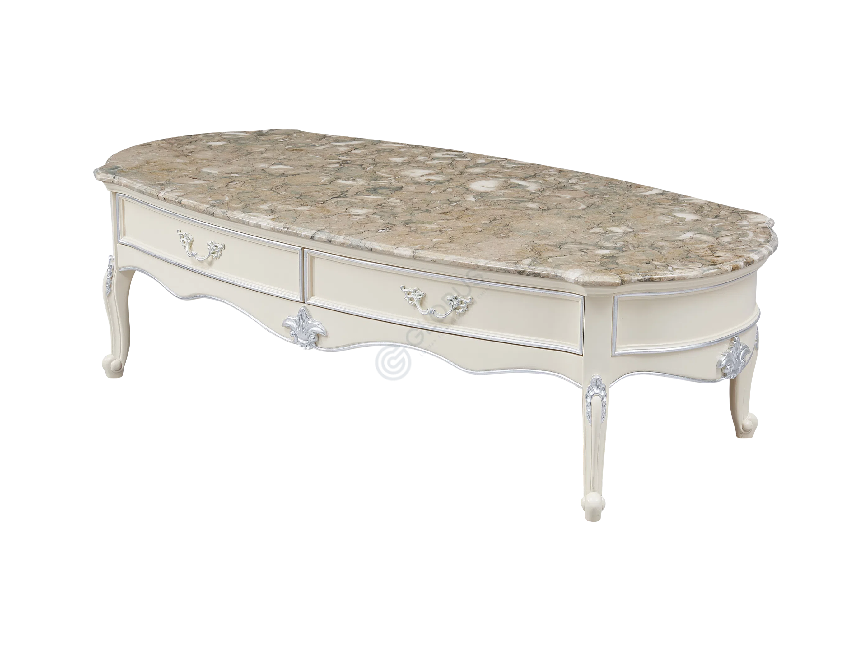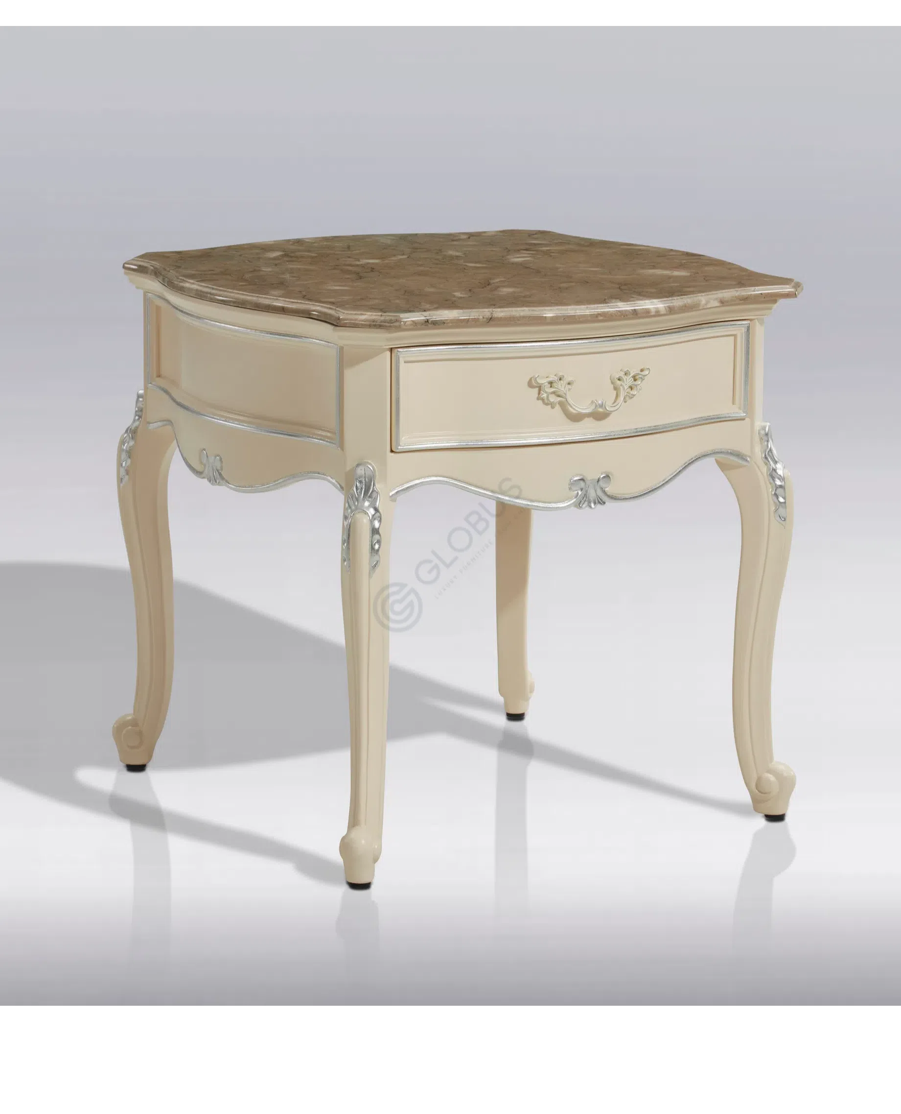 Верхняя часть стола выполнена из натурального мрамора с уникальным природным узором, придающим каждому изделию неповторимый облик. Мраморная поверхность не только красива, но и практична, добавляя ощущение прочности и долговечности. Этот благородный материал гармонично сочетается с основанием.