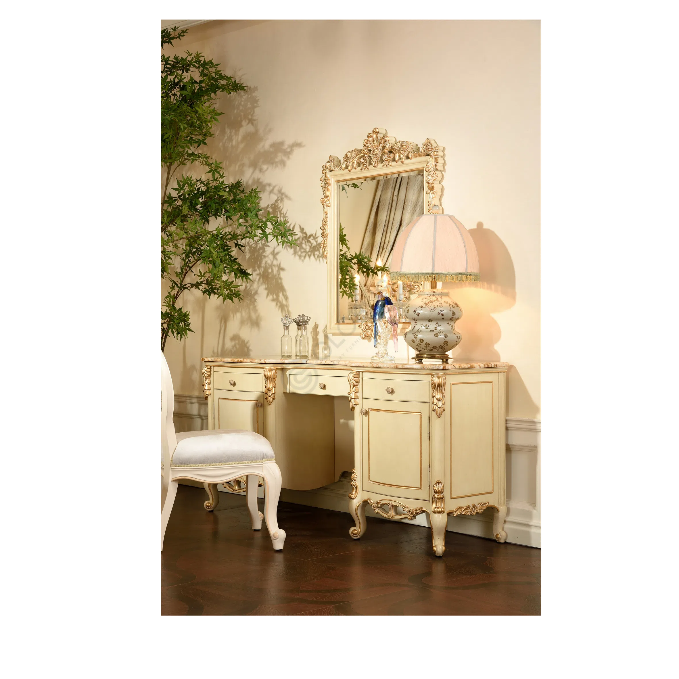 Каркас изделия выполнен из натурального дерева и прочной фанеры, что гарантирует долговечность и надежность конструкции. Резные элементы из массива древесины, украшенные изящной патиной, подчеркивают мастерство исполнения и придают предметам особый шарм старины и аристократизма.
