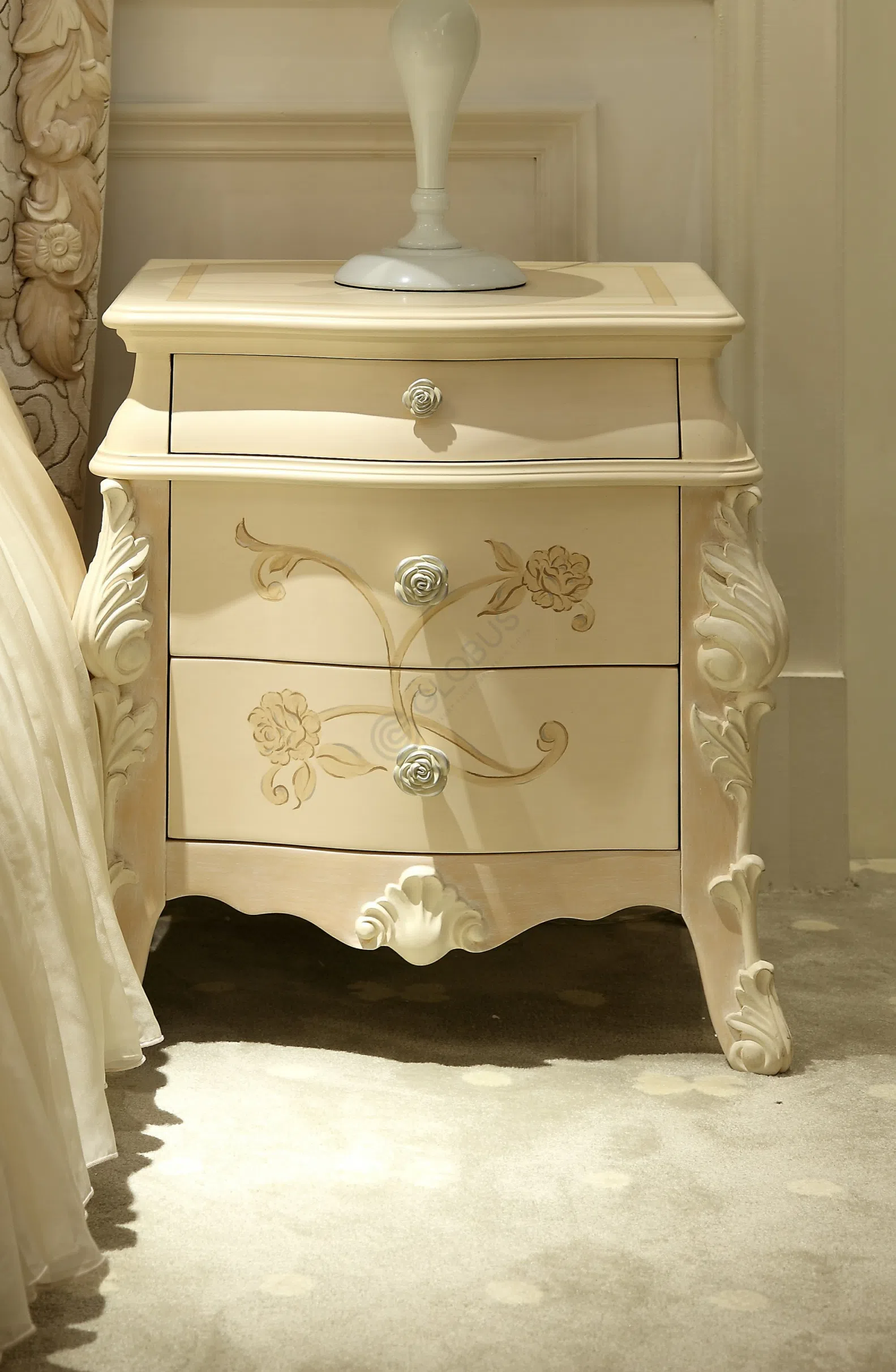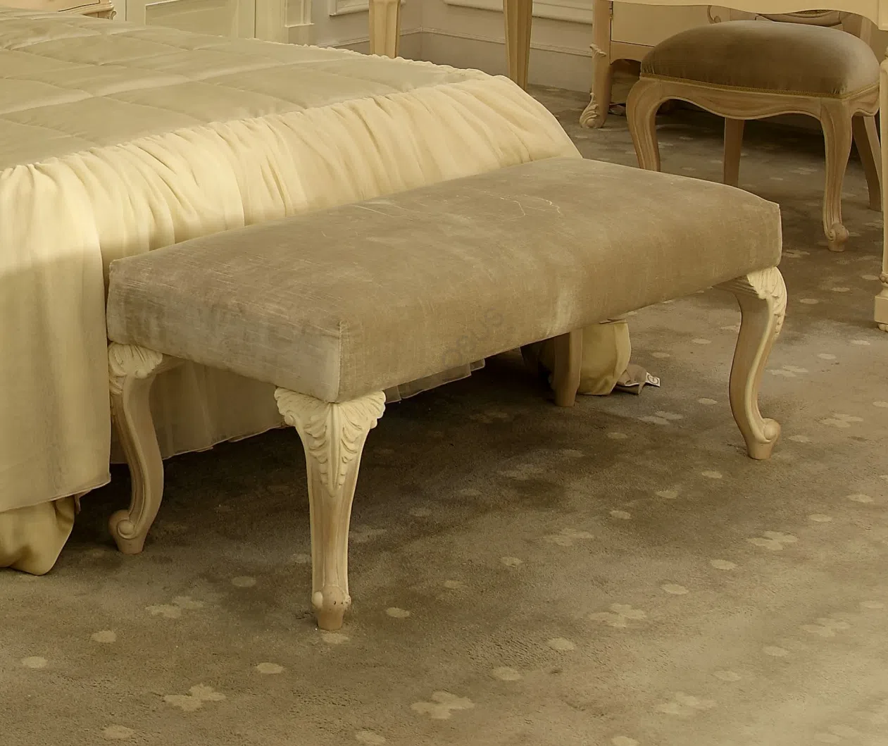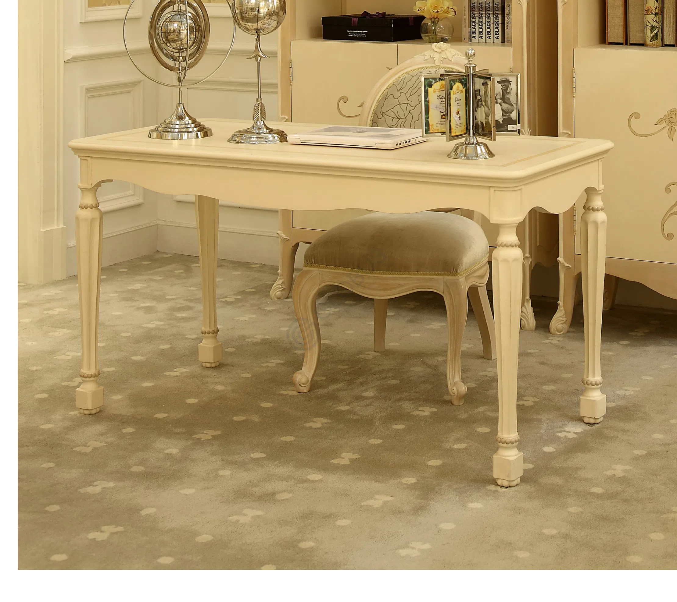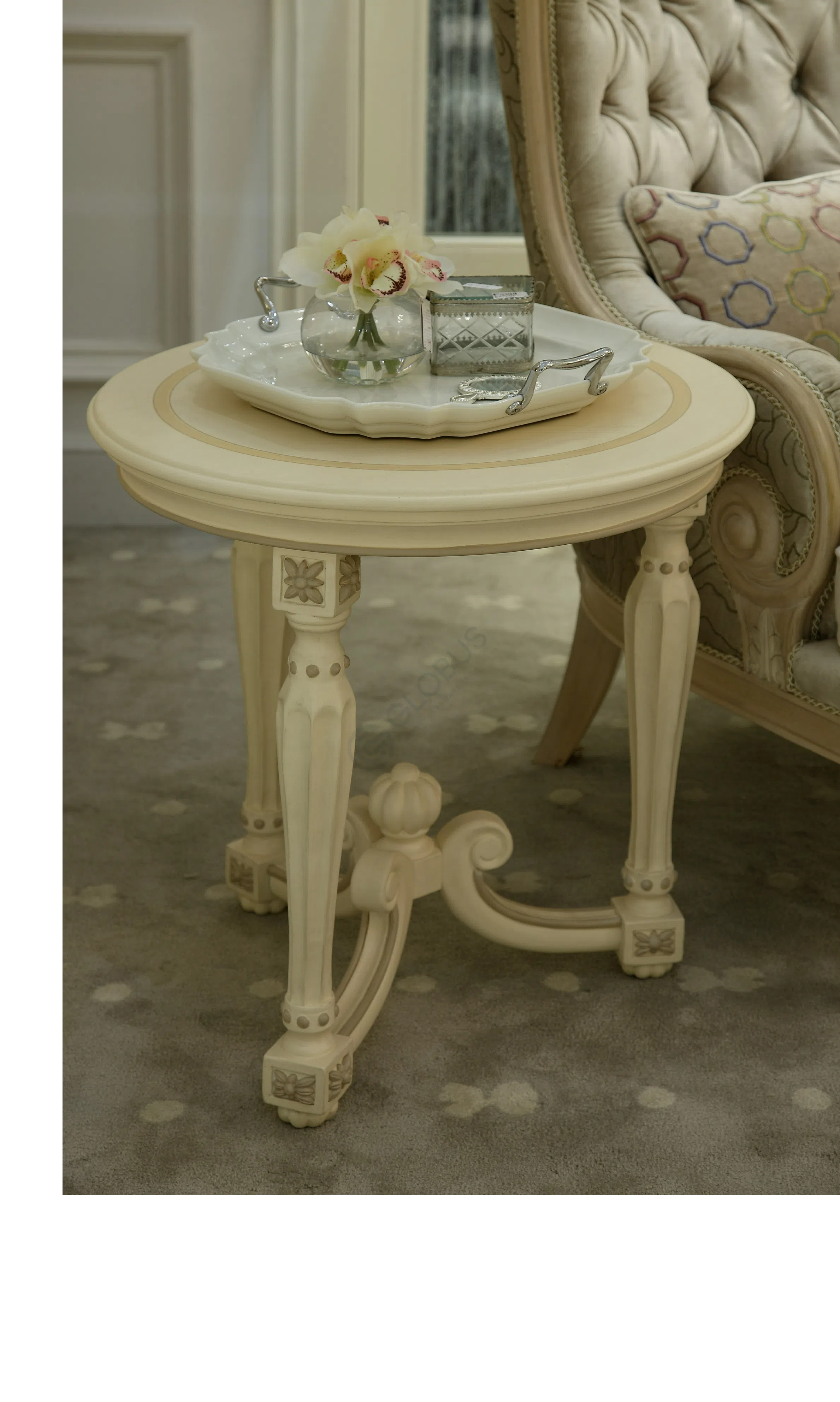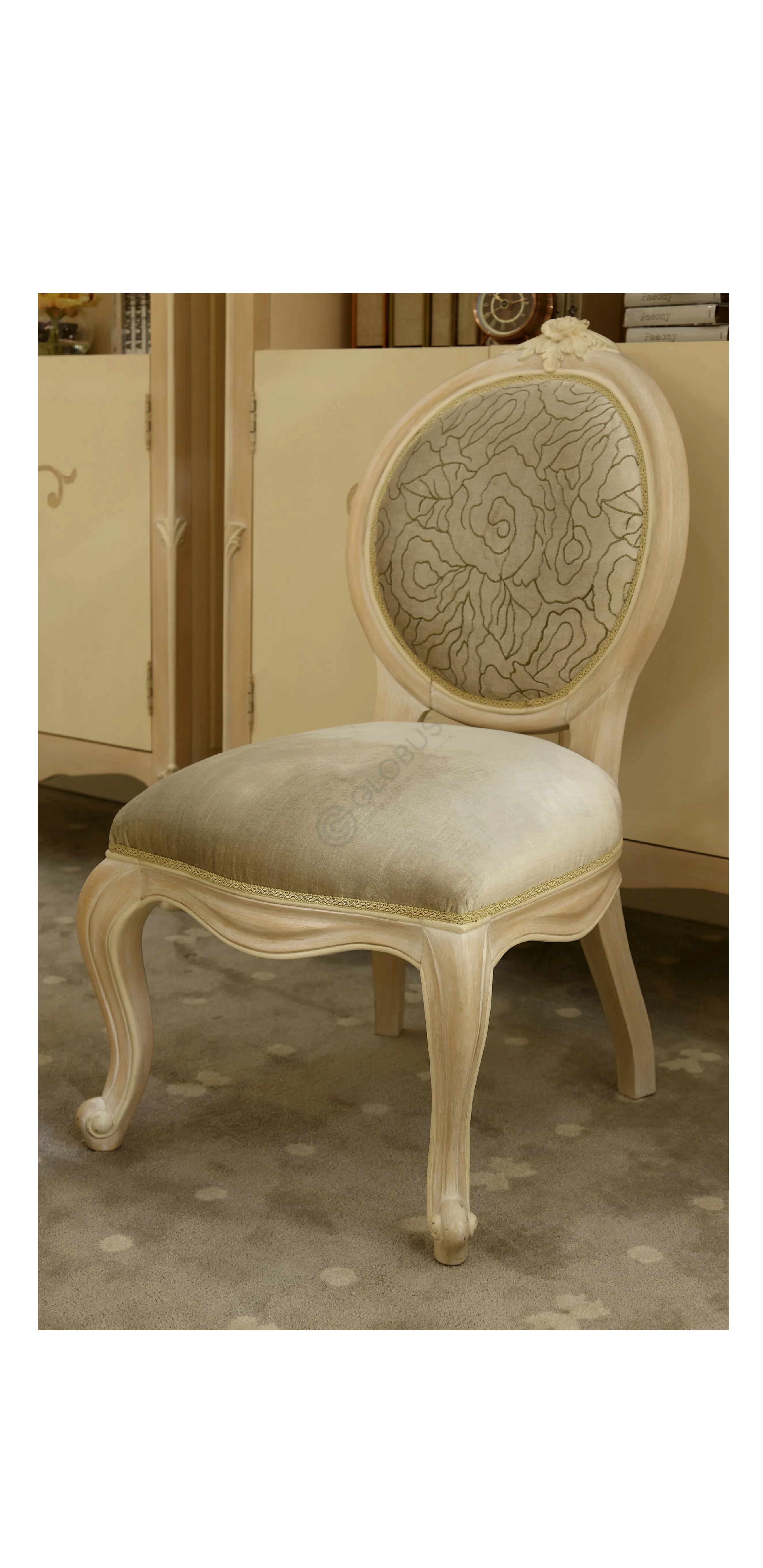 Основа предмета мебели изготовлена из натурального дерева в сочетании с прочной фанерой, обеспечивая надежность и долговечность конструкции. Резные детали на ножках добавляют элегантности, подчеркивая благородное происхождение и внимание к каждой линии.