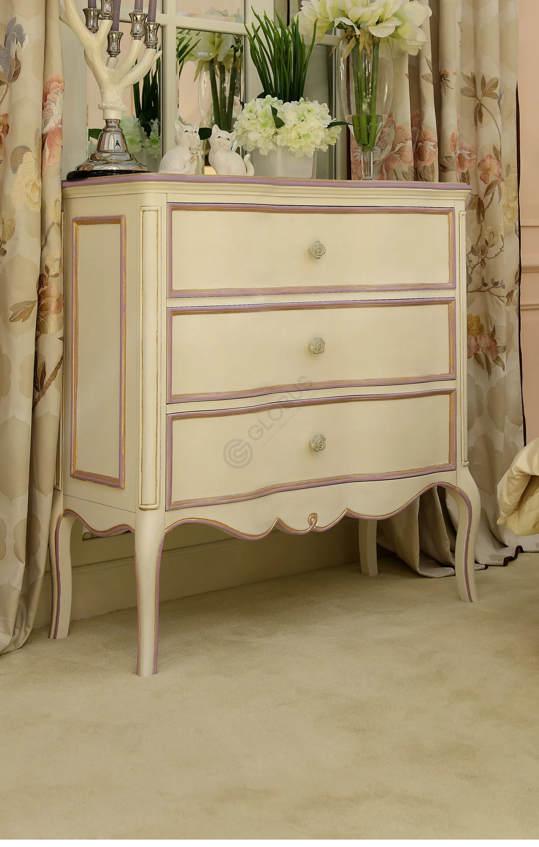 Изящные изгибы ножек и плавные линии столешницы формируют утонченный силуэт. Деликатная резьба, украшающая фасад, добавляет изделию особого шарма и подчеркивает внимание к деталям. Каждая кривая и декоративный элемент продуманы, чтобы создать ощущение легкости и воздушности.