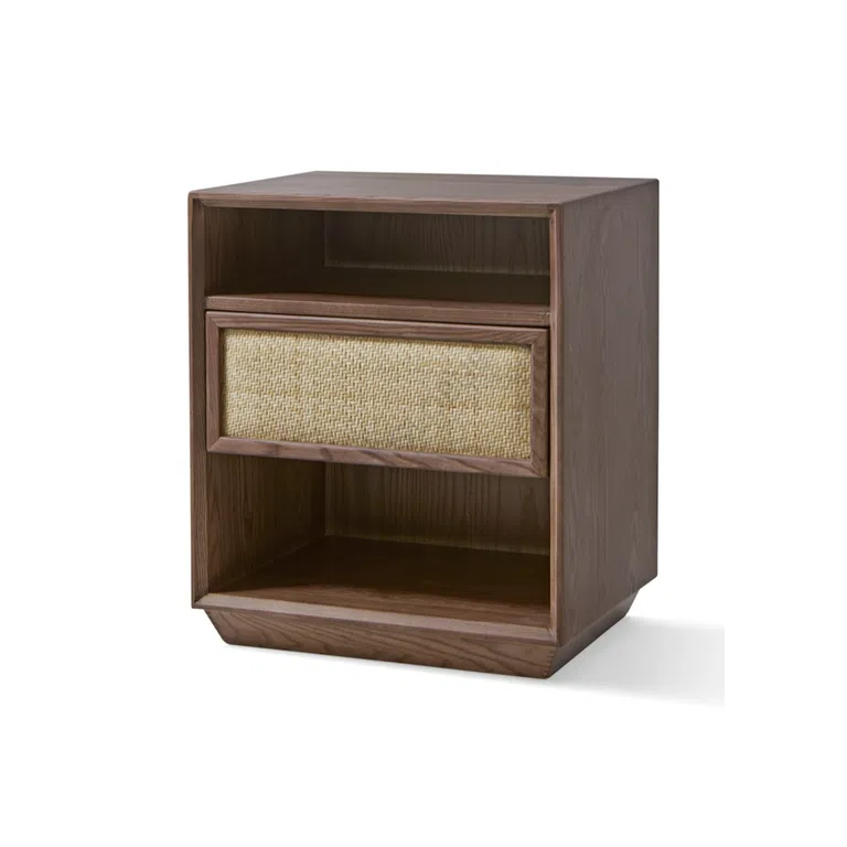 Элегантная и функциональная прикроватная тумба станет идеальным дополнением к вашей спальне, предлагая утонченное сочетание натуральных материалов и современного дизайна. Изготовленная из высококачественного дерева, эта изящная мебель демонстрирует теплый оттенок и выразительную текстуру, подчеркивающую ее естественное происхождение. Вместительный ящик, отделанный ротангом, добавляет нотку экзотики и обеспечивает практичное решение для хранения ваших предметов. Нижняя полка предлагает дополнительное пространство для книг, журналов или декоративных элементов, придавая тумбе функциональность и стиль. Продуманные размеры этого изделия позволят ему гармонично вписаться в пространство рядом с вашей кроватью, дополняя обстановку комнаты удобством и эстетикой.
