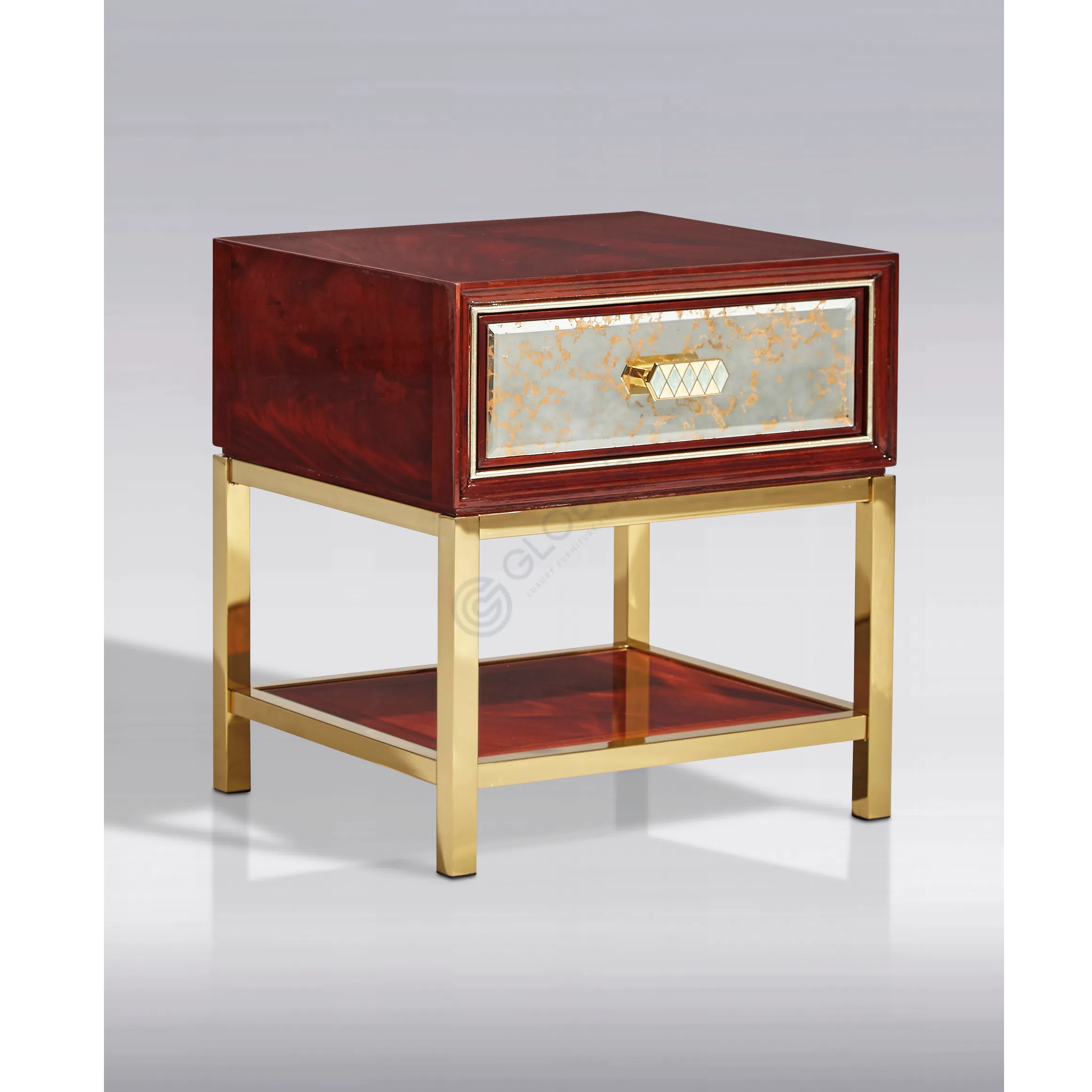 Обивка выполнена из высококачественного текстиля глубокого винного оттенка, излучающего благородство. Поверхность ткани украшена деликатным узором, добавляющим текстурную сложность и визуальный интерес. Контрастный кант золотистого тона изящно подчеркивает линии изделия, придавая ему завершенный вид.