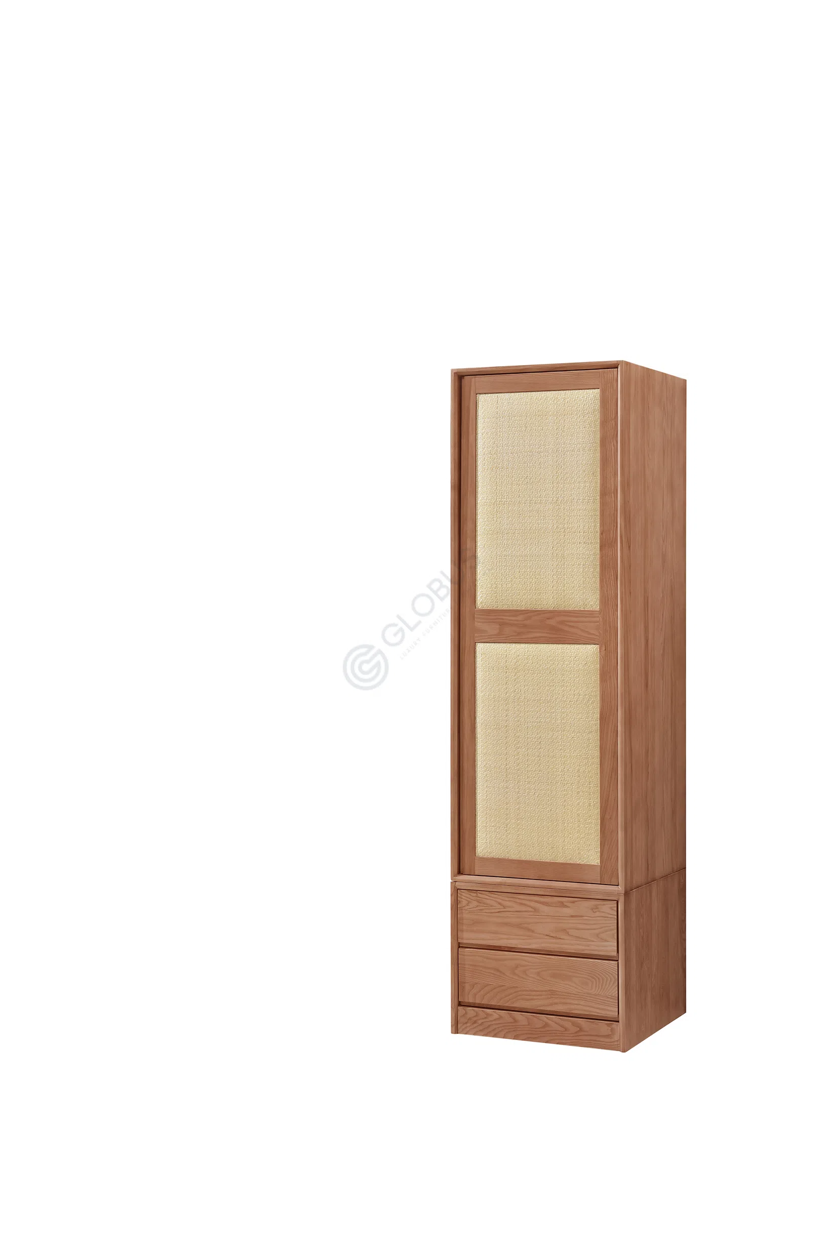 Каждый элемент изготовлен из благородного натурального дерева, чей глубокий оттенок и уникальная текстура придают изделию особую выразительность. Фронтальная часть украшена изысканным плетением из натурального ротанга, добавляющим легкость и тактильную привлекательность.