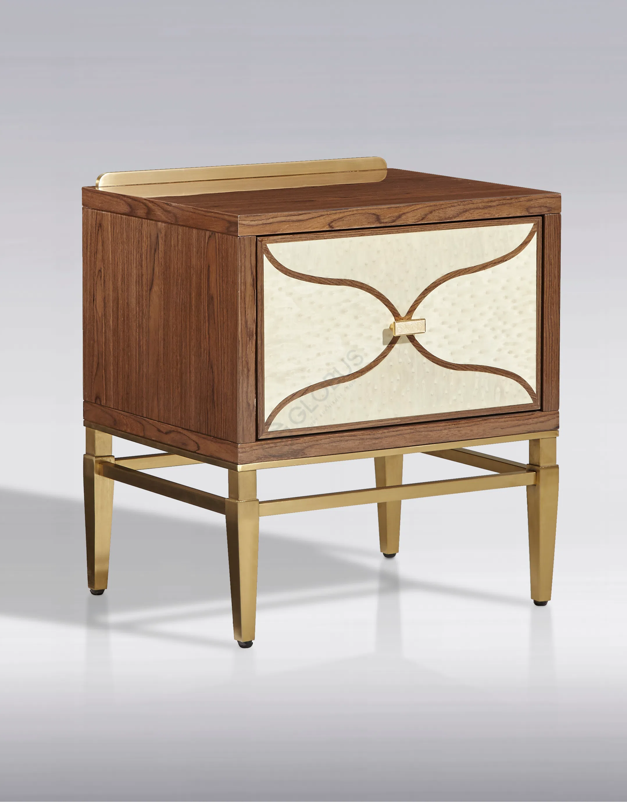 Этот изысканный предмет мебели является воплощением современного стиля, умело дополненного роскошными элементами арт-деко. Его строгие, но элегантные линии корпуса из натурального дерева и шпона эффектно контрастируют с декоративными панелями на фасаде. Утонченный геометрический узор, украшающий дверцы, создает визуальный акцент и придает облику изделия неповторимую выразительность, напоминая об узорах знаменитой эпохи. Металлические ручки и тонкое основание добавляют легкости и завершают благородный образ.
