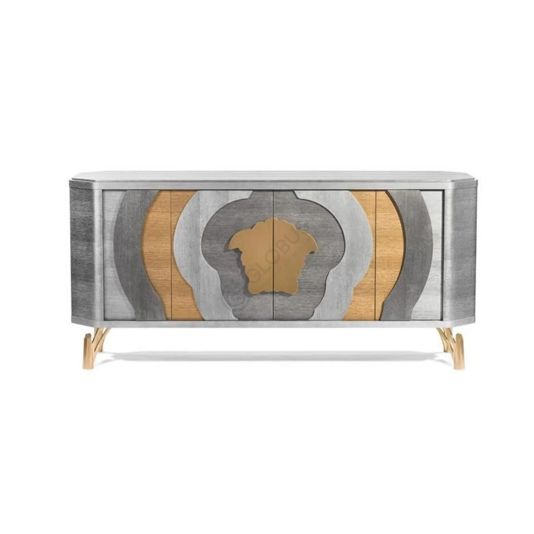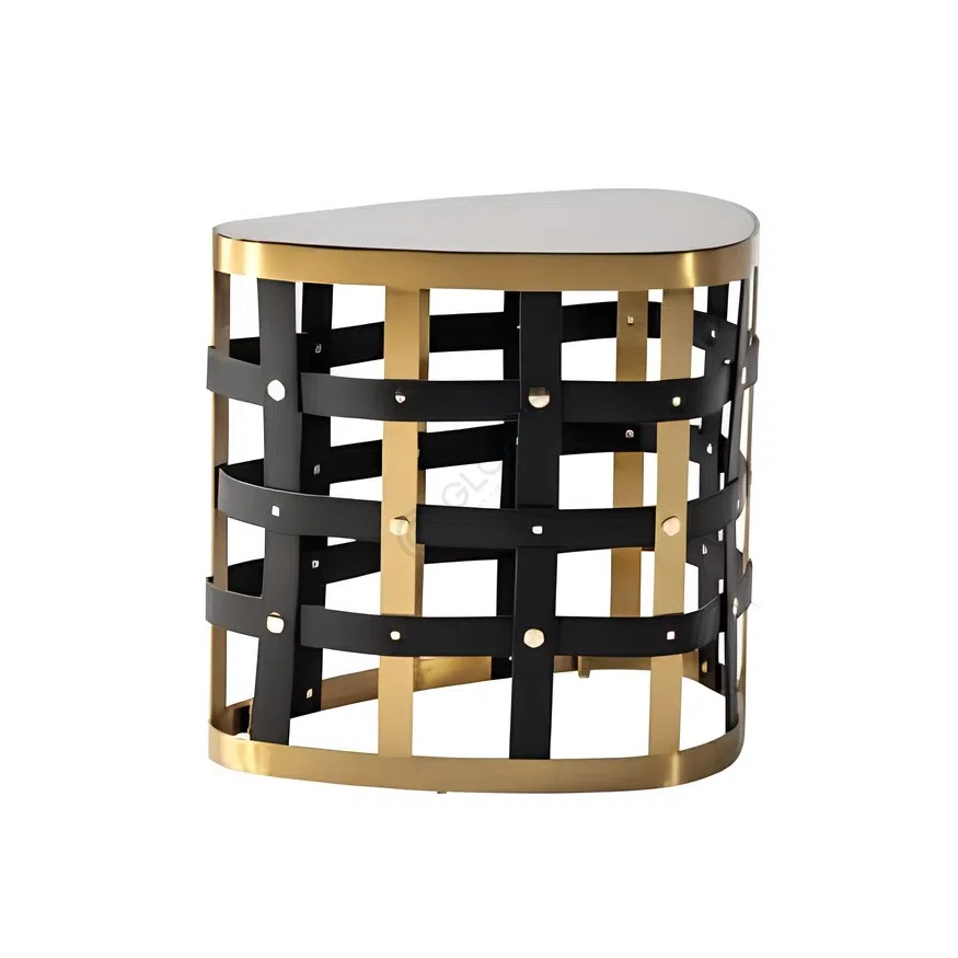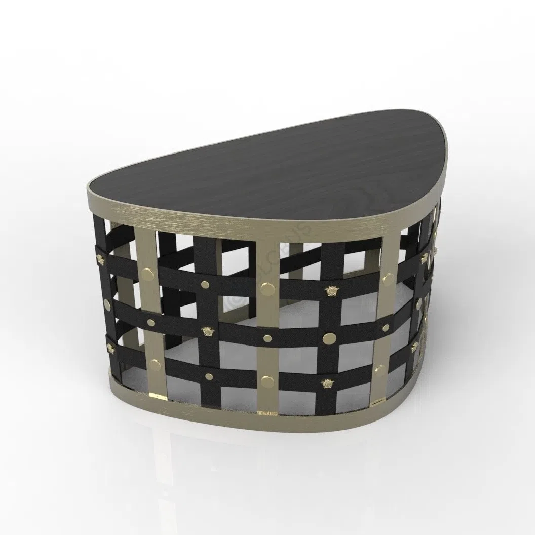 Основа из влагостойкой фанеры обеспечивает надежность, а фигурные опоры из нержавеющей стали с матовым золотистым покрытием в союзе с элементами из массива древесины создают эффект лёгкой воздушности. Акцентная молния по периметру с многоцветной декоративной лентой привносит утончённую оригинальность.