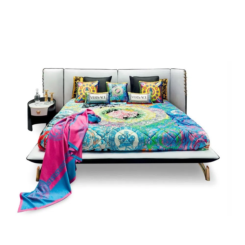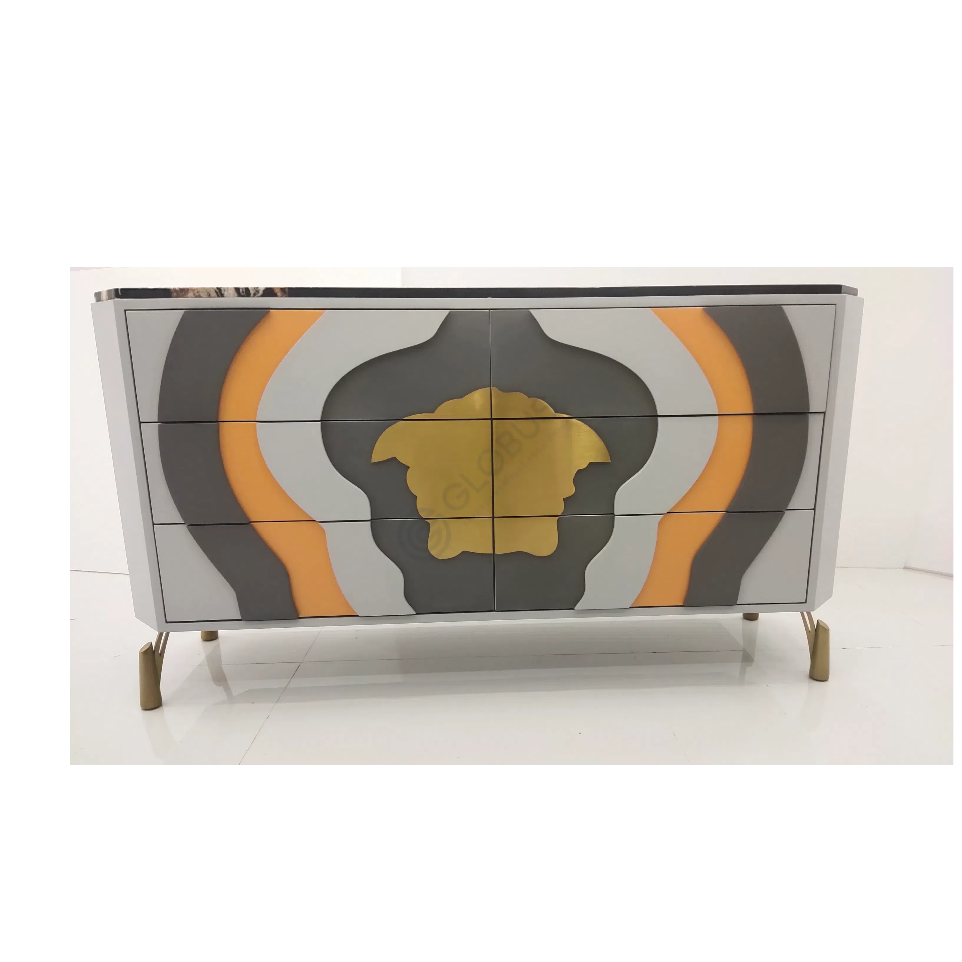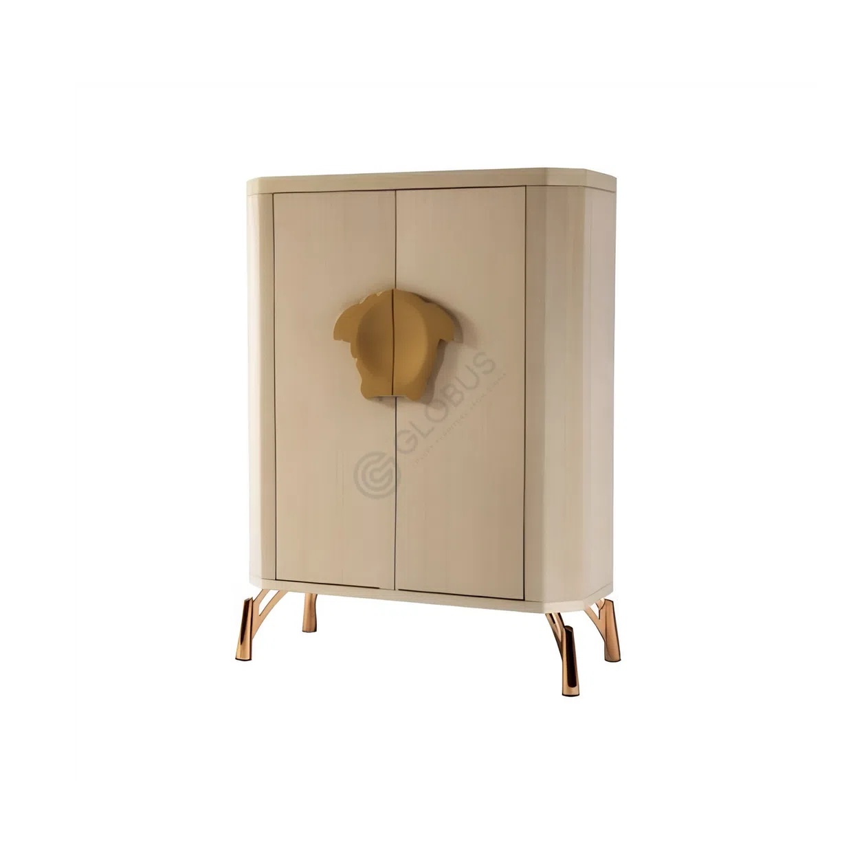 Основа из влагостойкой фанеры обеспечивает надежность, а фигурные опоры из нержавеющей стали с матовым золотистым покрытием в союзе с элементами из массива древесины создают эффект лёгкой воздушности. Акцентная молния по периметру с многоцветной декоративной лентой привносит утончённую оригинальность.