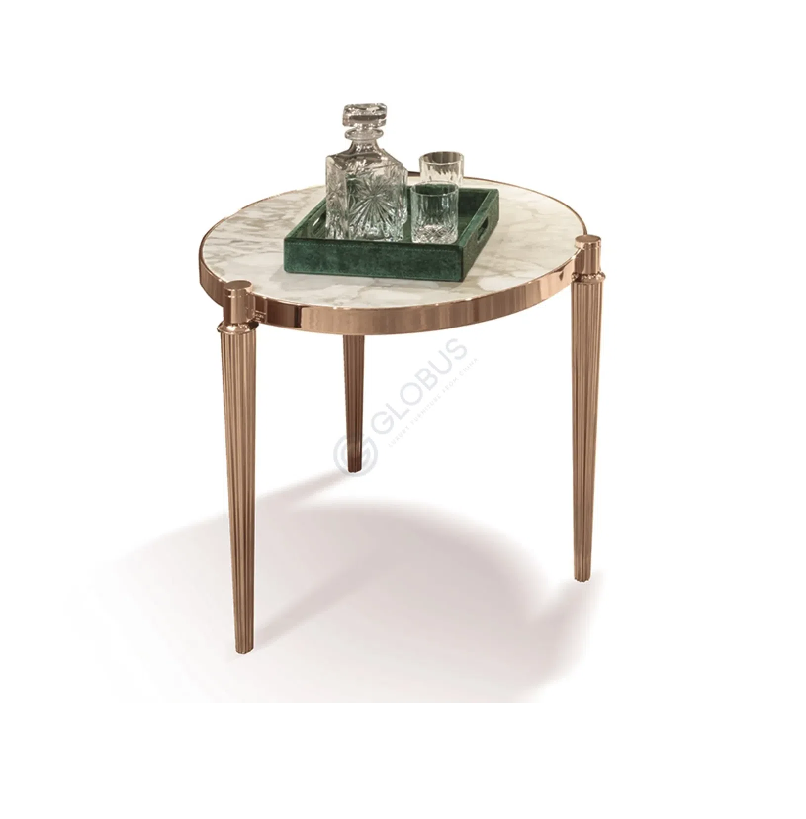 Установить изделие в гостиной можно рядом с диваном или креслом для создания выразительного акцента. Натуральный камень и металл гарантируют долговечность, а гладкая поверхность упрощает уход.