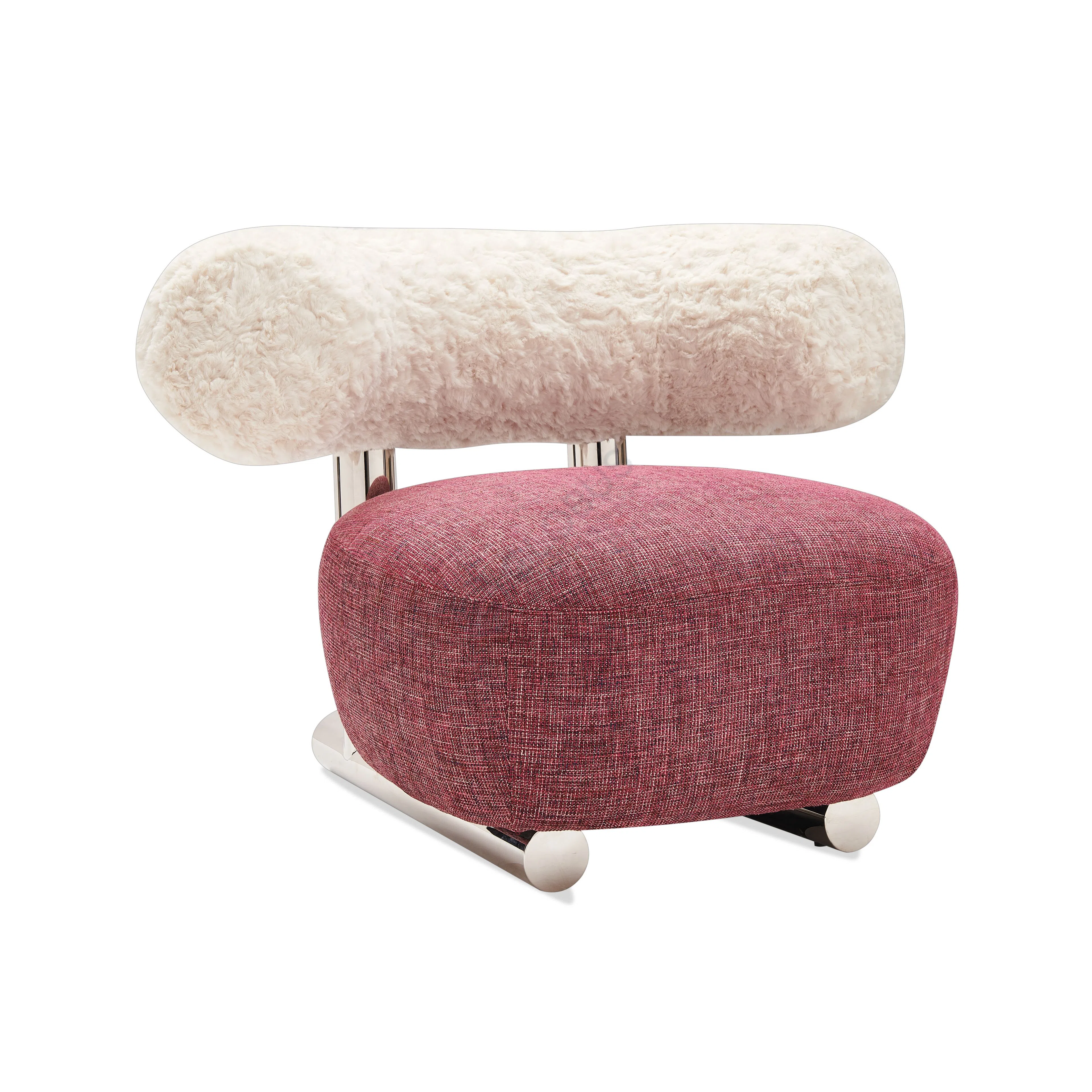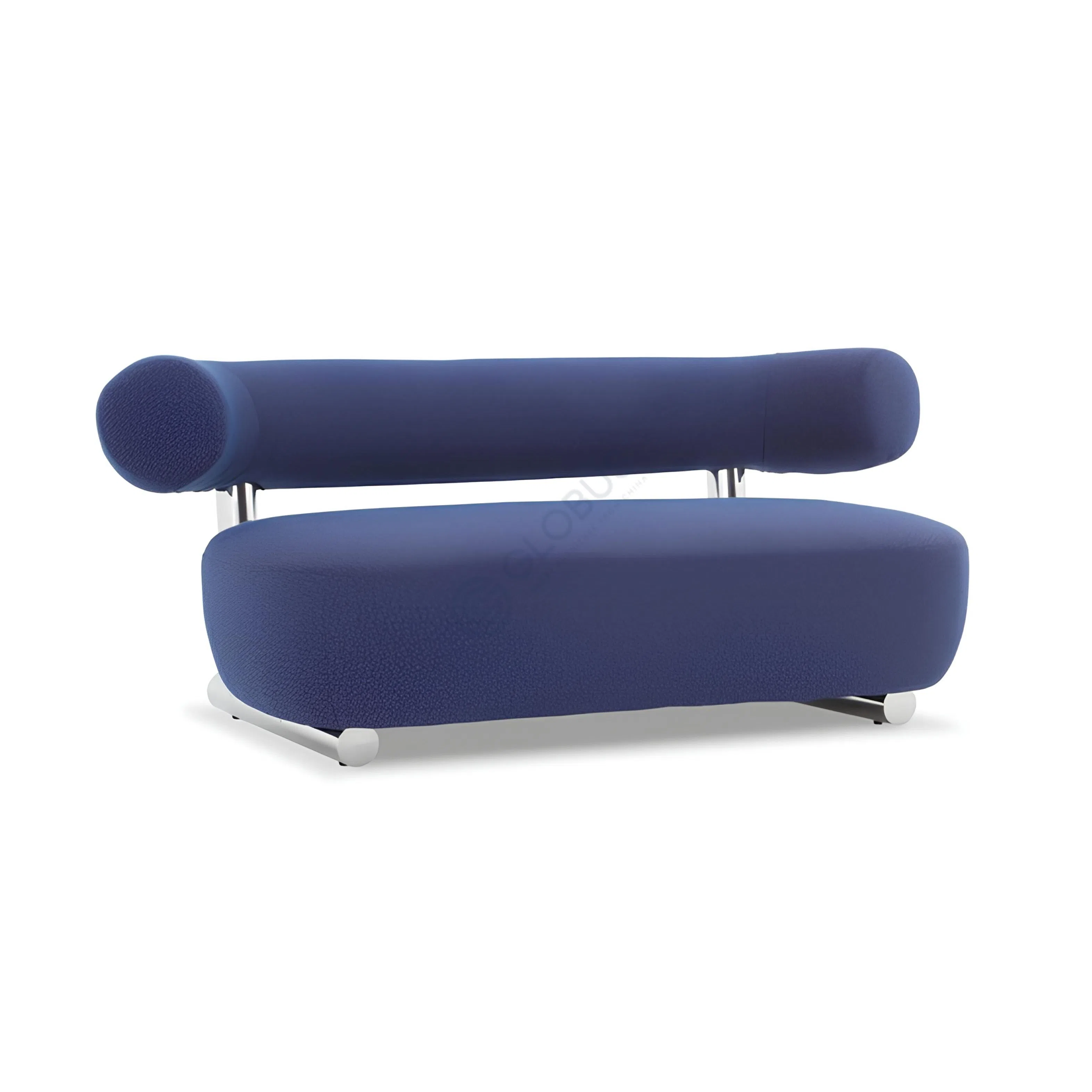 Кушетка отличается лаконичным силуэтом с мягко-округлым сиденьем и изящной цилиндрической спинкой. Каркас из фанеры обеспечивает прочность при минимальном весе, а полированная рама из нержавеющей стали выступает в роли опоры и декоративного элемента.