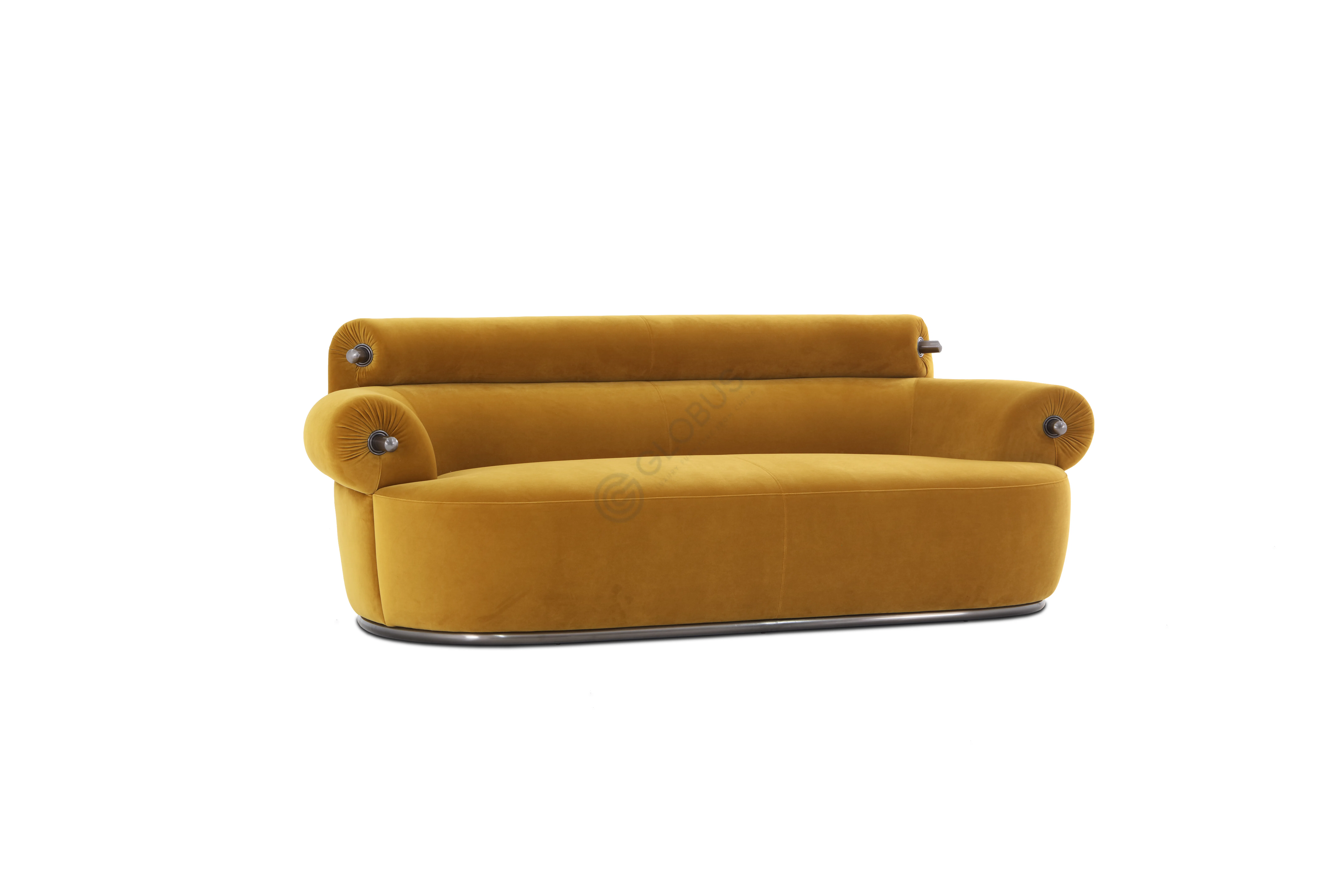 Каждый элемент демонстрирует безупречное мастерство. Каркас, выполненный из прочного натурального дерева и фанеры, обеспечивает надежность и долговечность конструкции. Роскошная текстильная обивка с бархатистой текстурой дарит непревзойденные тактильные ощущения, а декоративные акценты из нержавеющей стали, элегантно фиксирующие валики, подчеркивают изысканность и современную эстетику предмета.