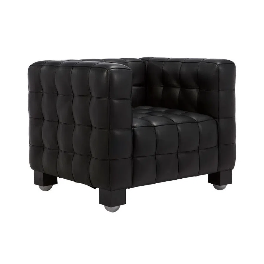 Диван с чёткими геометрическими формами и выразительной фактурой квадратной прострочки подчёркивает современный лофт. Низкая ровная спинка и одинаковая по высоте линия подлокотников создают лаконичный силуэт, в котором чувствуется индустриальный характер.