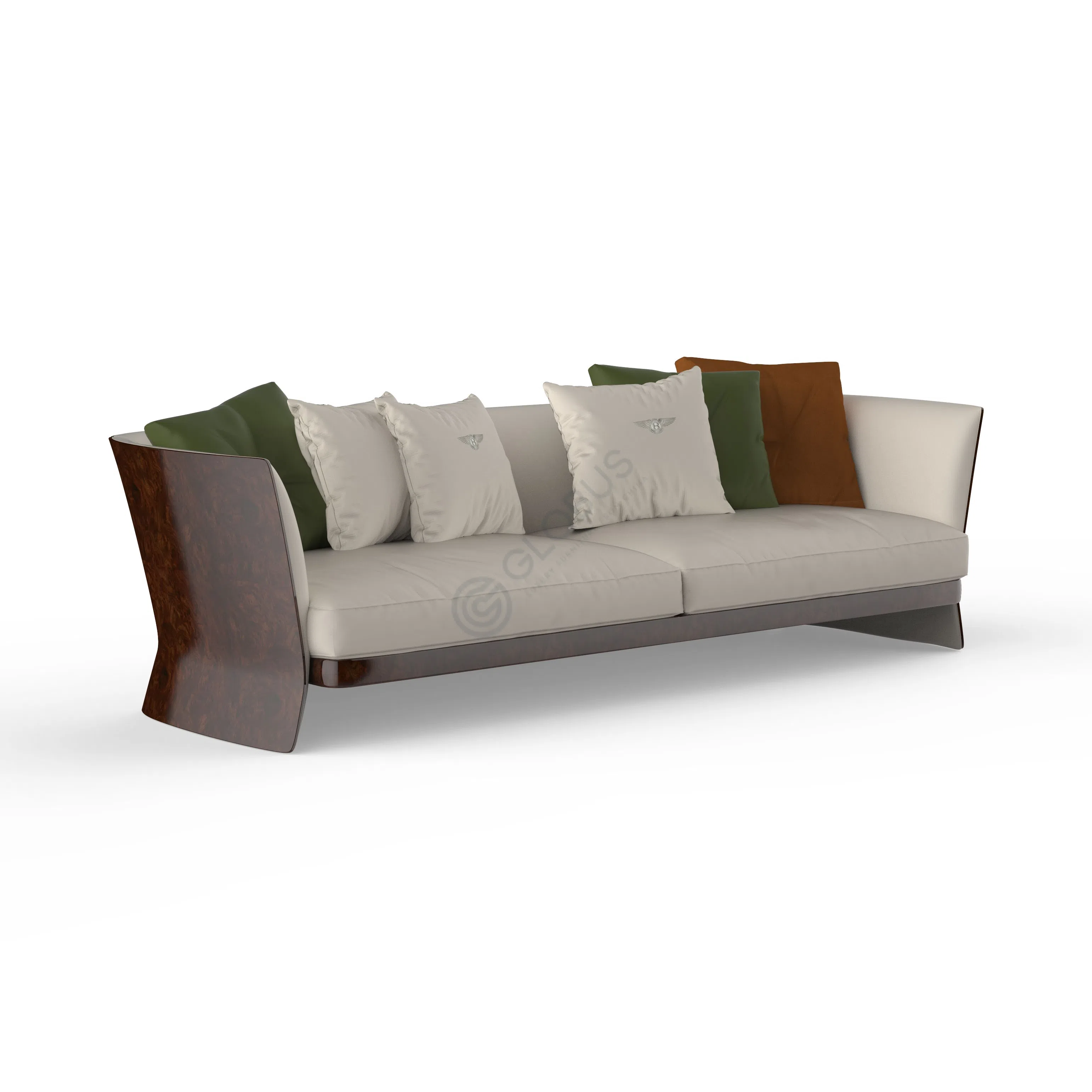 Этот предмет мебели представляет собой воплощение современного стиля и изысканного вкуса, становясь центральным элементом любой гостиной. Его облик строится на гармоничном сочетании плавных линий и тщательно подобранных материалов, что придает ему особую выразительность. Изогнутые панели из фанеры, искусно покрытые шпоном с выразительной текстурой, формируют уникальный силуэт, обнимающий мягкое сиденье.