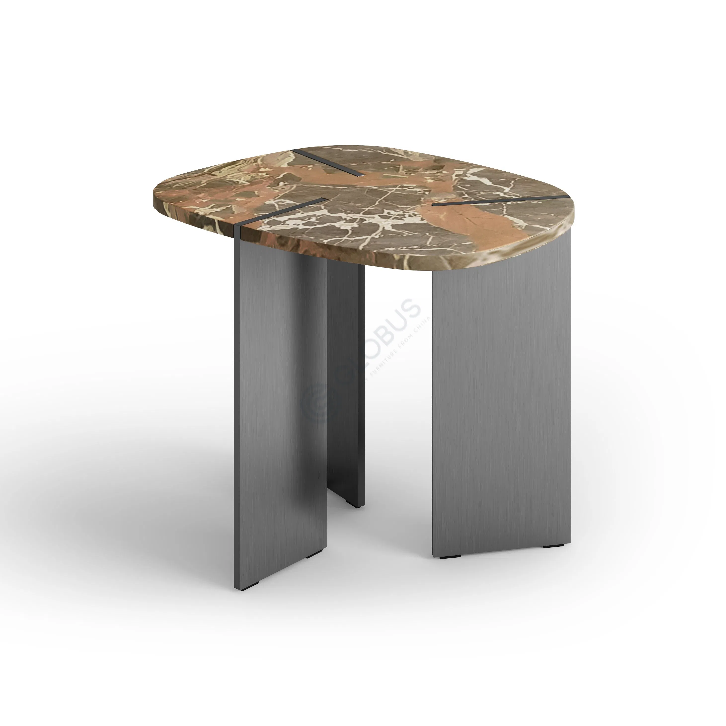 Этот изящный журнальный столик является воплощением элегантности и современного стиля. Сочетая в себе утонченность натурального мрамора и прочность нержавеющей стали, он станет центральным элементом любого интерьера. Поверхность столика выполнена из тщательно отобранного мрамора с уникальным рисунком, который делает каждый экземпляр неповторимым. Роскошные золотисто-коричневые оттенки мрамора гармонично дополняются строгостью металлических ножек, обеспечивая идеальный баланс между естественной красотой и индустриальной прочностью. Непревзойденное качество материалов и продуманный дизайн делают этот столик не просто предметом мебели, а настоящим произведением искусства для современного пространства.