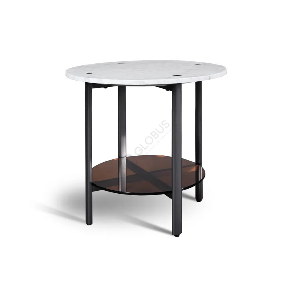 Верхняя столешница выполнена из натурального мрамора. Каждый слэб обладает уникальным рисунком прожилок, что делает столик по-настоящему эксклюзивным. Природная красота камня придает поверхности изысканный вид и приятную прохладу.