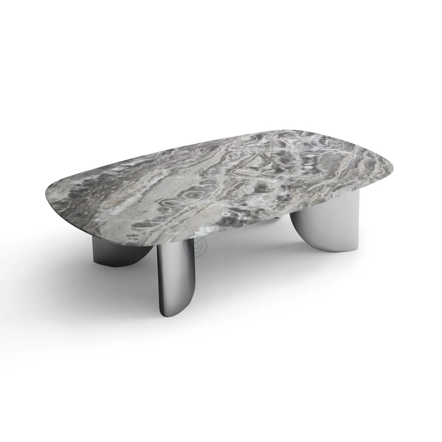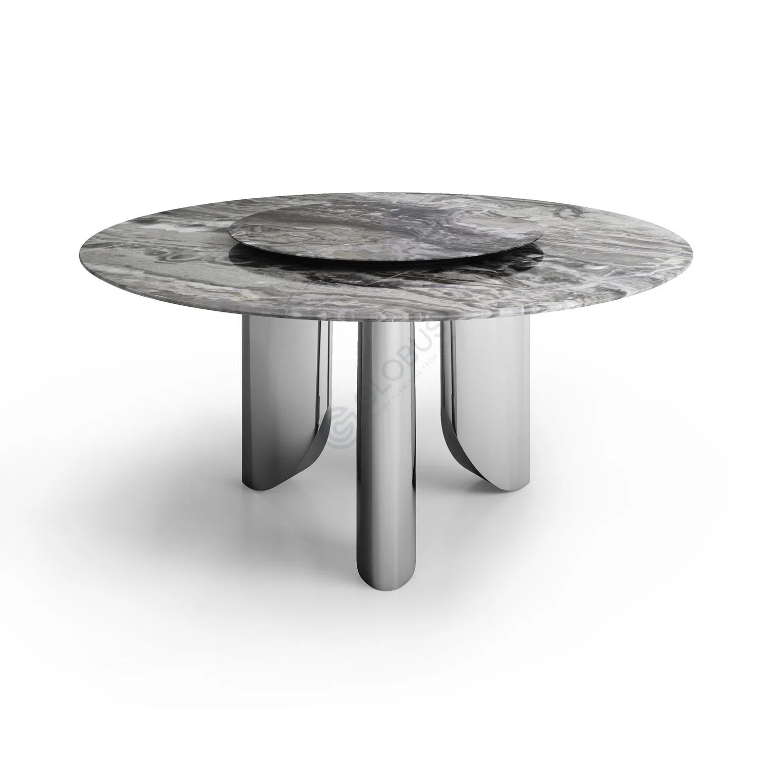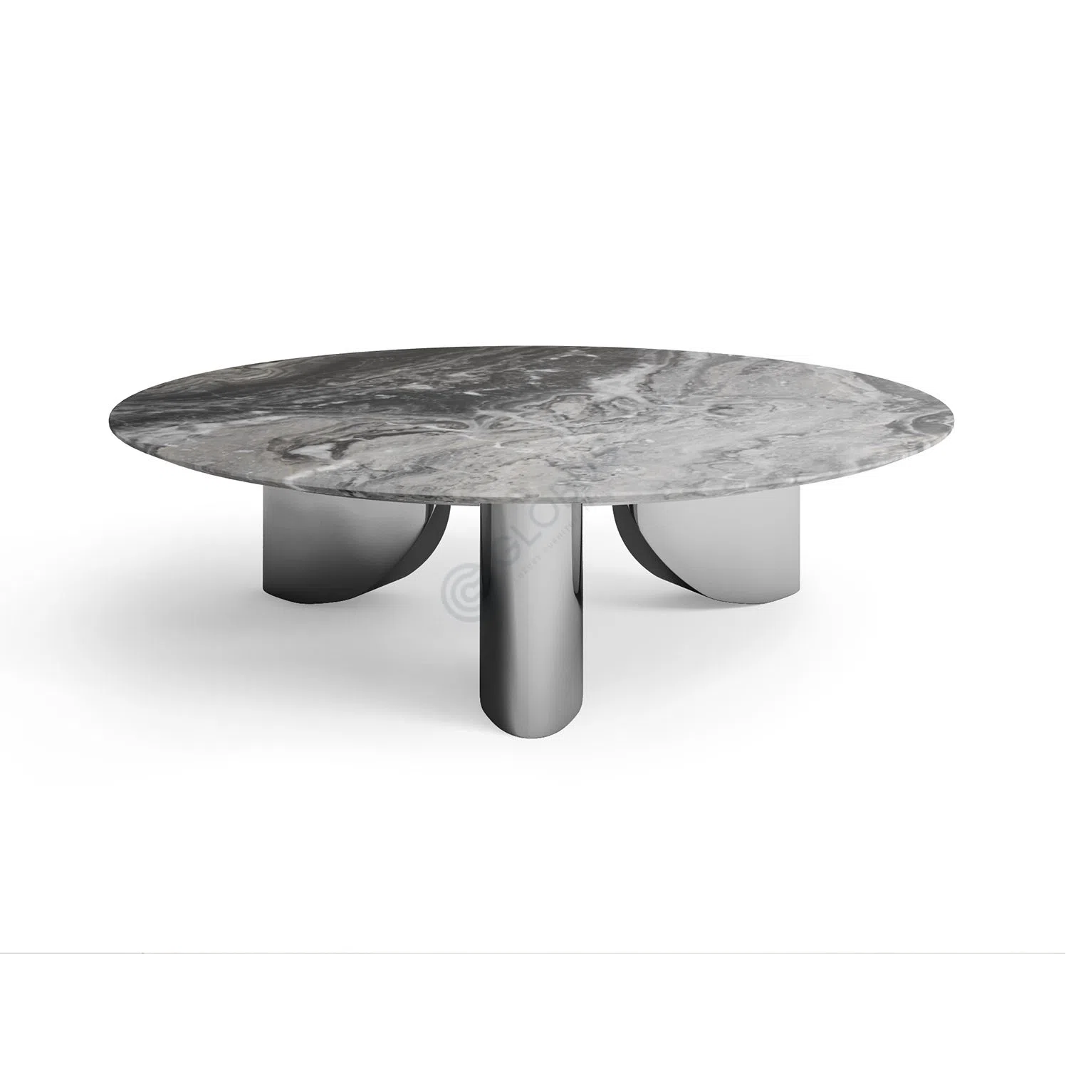 Стойкие опоры из нержавеющей стали обеспечивают надежную основу для столика, придавая ему стабильность без ущерба для дизайна. Изысканное соединение серебристых оттенков металла и глубоких, насыщенных прожилок мрамора создает изысканный акцент в вашем пространстве.
