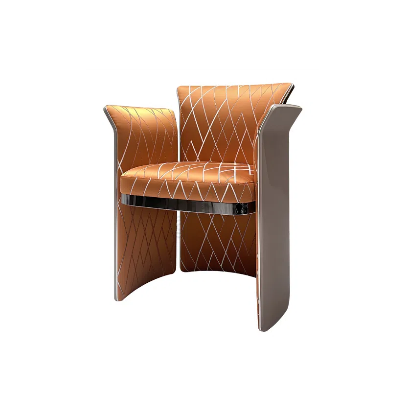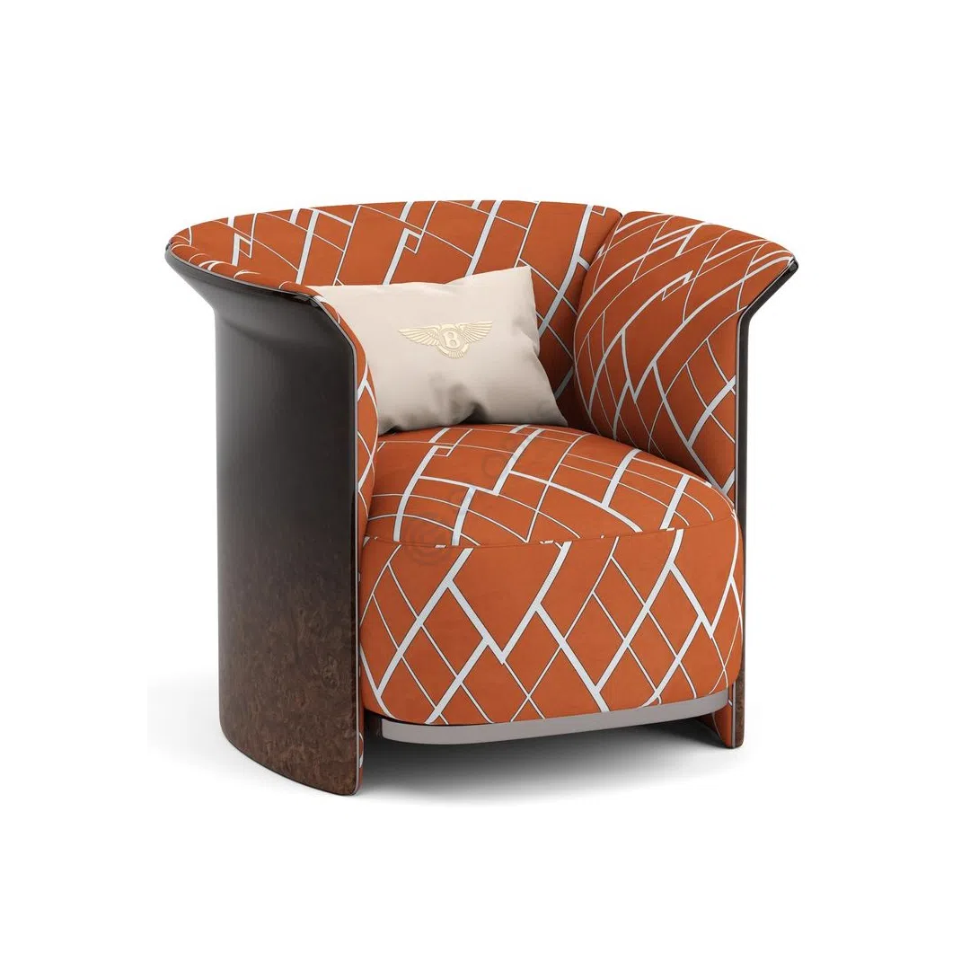 Надежный каркас изделия, выполненный из натурального дерева и фанеры, гарантирует непревзойденную прочность и стабильность на многие годы. Поддерживающая его изящная база из полированной нержавеющей стали придает этой модели воздушность и современный акцент, визуально приподнимая её над полом. Тонкая, благородная окантовка подлокотников служит завершающим штрихом, добавляя изысканности общей композиции.