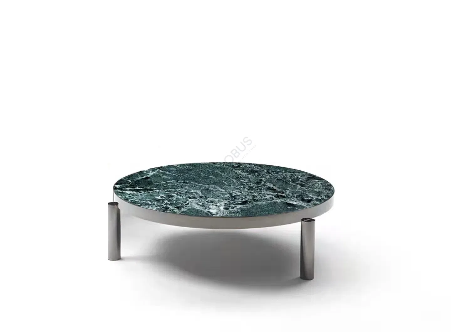 Основание предмета мебели формируют прочные ножки из полированной нержавеющей стали. Их гладкая, отражающая поверхность создает игру света и тени, подчеркивая чистоту линий. Сочетание холодного блеска металла и фактуры камня воплощает собой сущность современного стиля, где функциональность встречается с роскошью.