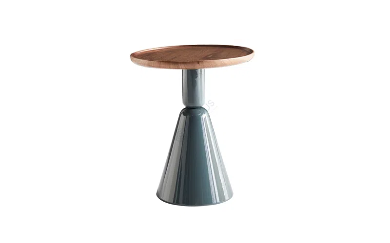 Основание стола выполнено из углеродистой стали и имеет уникальную конусообразную форму. Его монолитный черный оттенок создает выразительный контраст с природной текстурой столешницы, одновременно обеспечивая исключительную устойчивость. Эта скульптурная опора не только поддерживает столешницу, но и сама по себе является самостоятельным арт-объектом.
