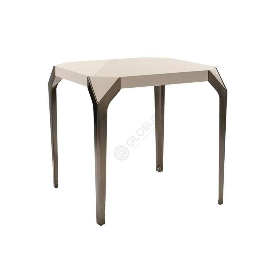 Основание стола создано из полированной нержавеющей стали. Изящные ножки, соединенные под оригинальным углом, демонстрируют мастерство исполнения и добавляют конструкции легкости и современности.