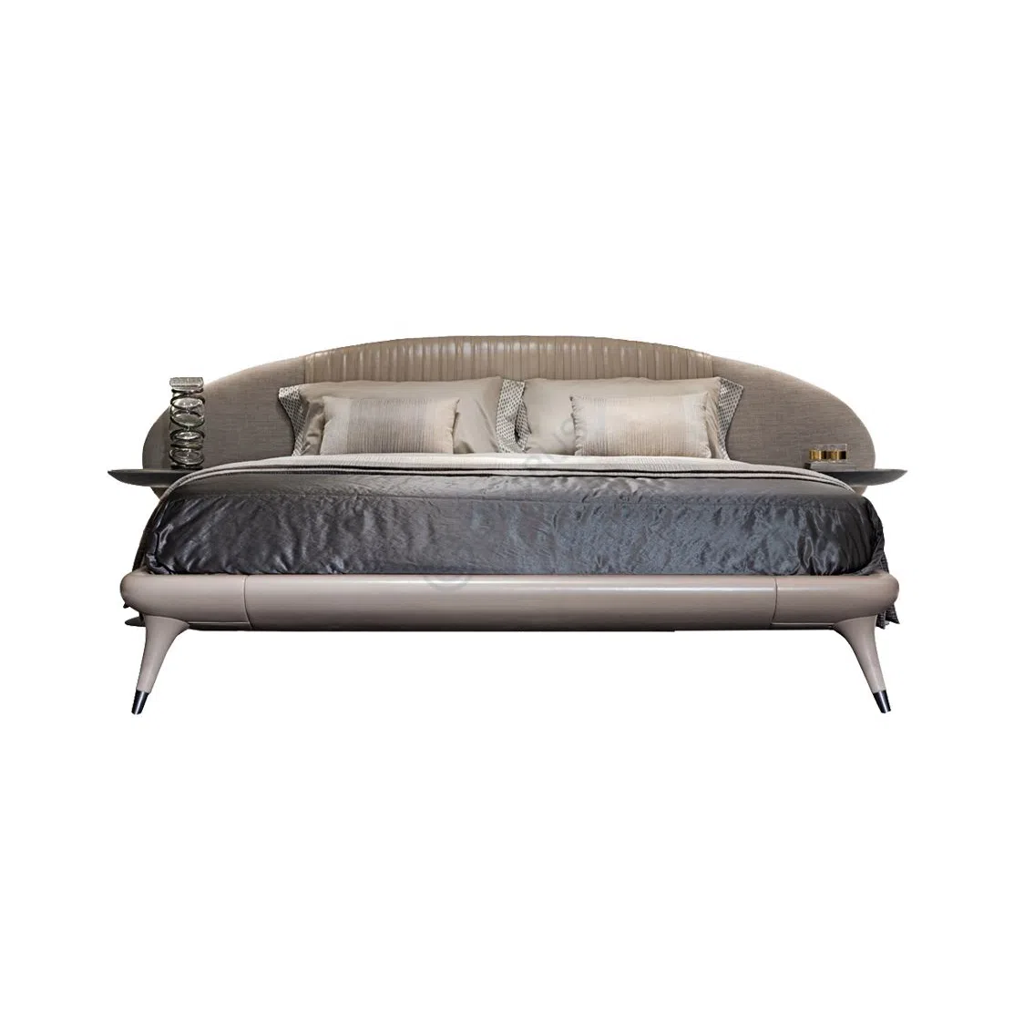Основа конструкции выполнена из комбинации натурального дерева и прочной фанеры, обеспечивая долговечность и надежность. Ножки, выполненные из дерева, утончаются книзу и завершаются акцентами из нержавеющей стали, добавляя элегантности и устойчивости.