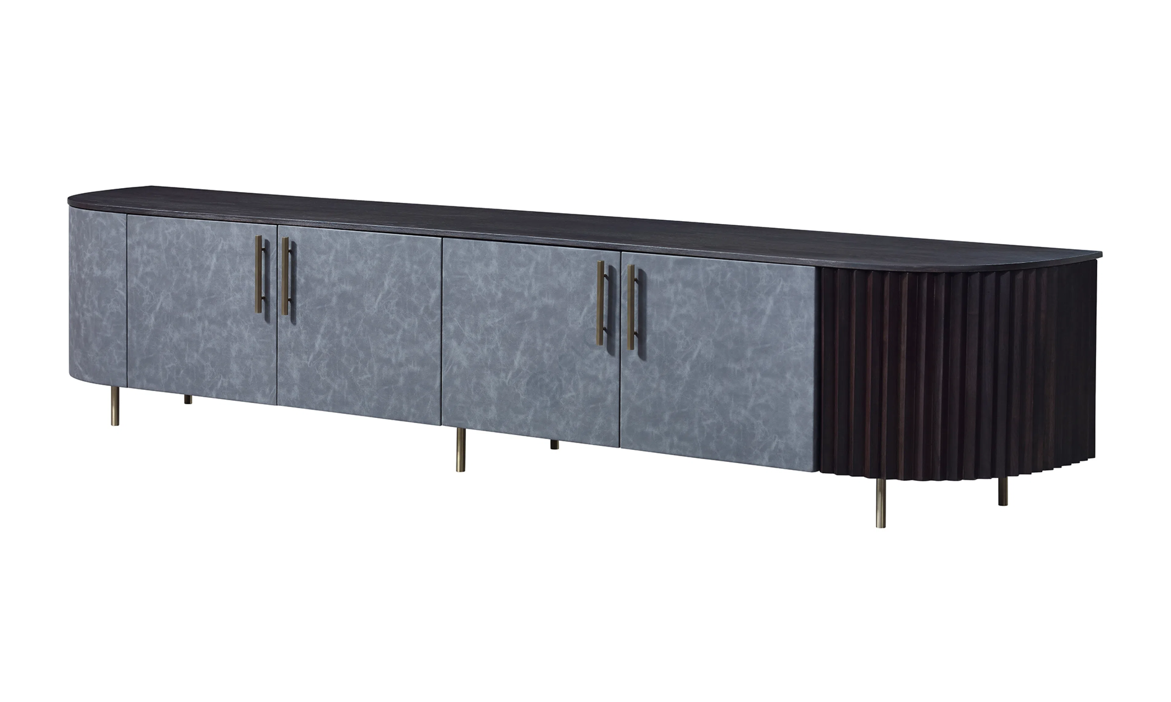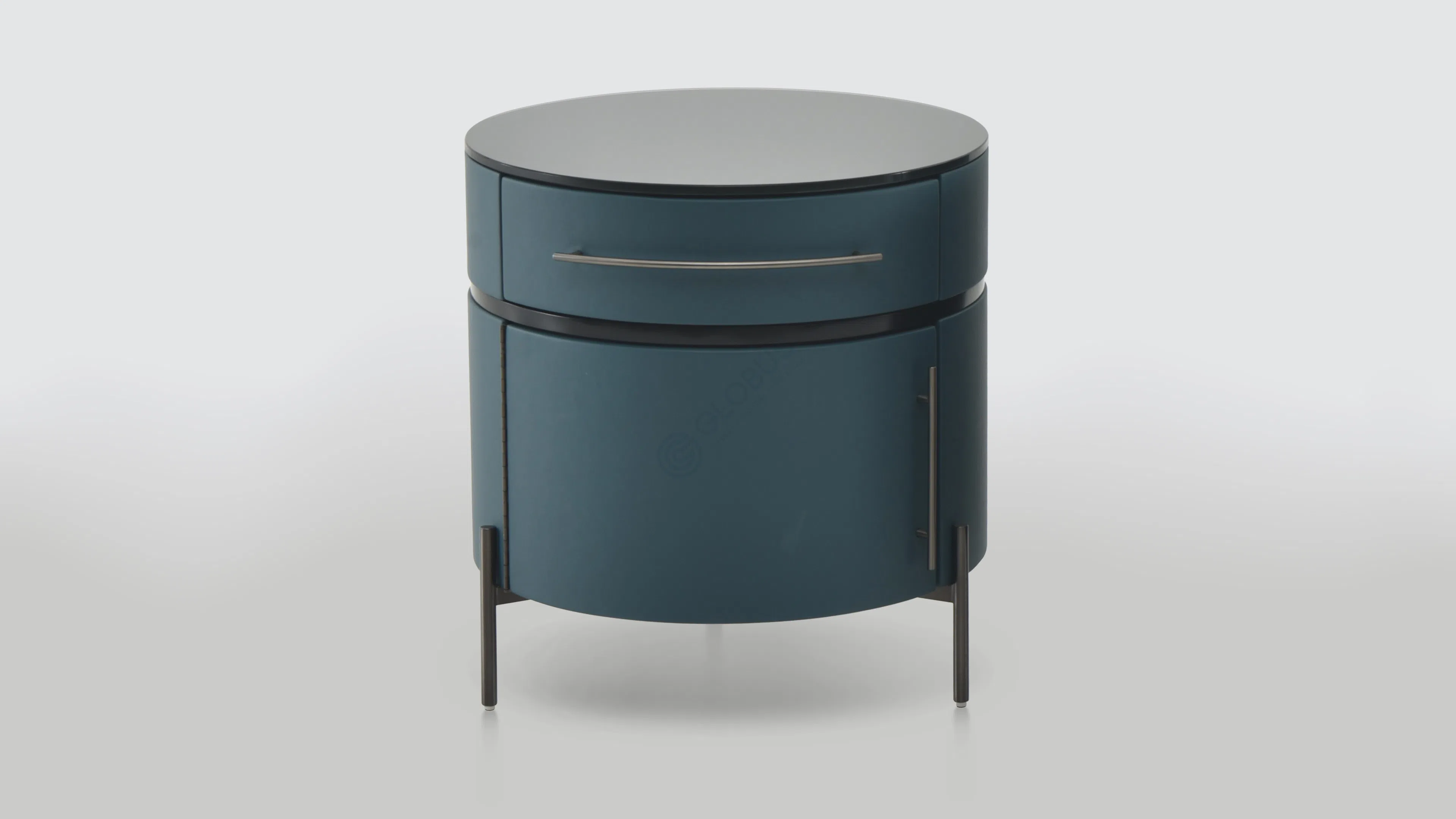 Винный шкаф с овальным силуэтом на изящных опорах из нержавеющей стали демонстрирует спокойную современную эстетику. Закругленный фасад с ритмом вертикальных ламелей подчеркивает аккуратные пропорции и визуальную легкость.
