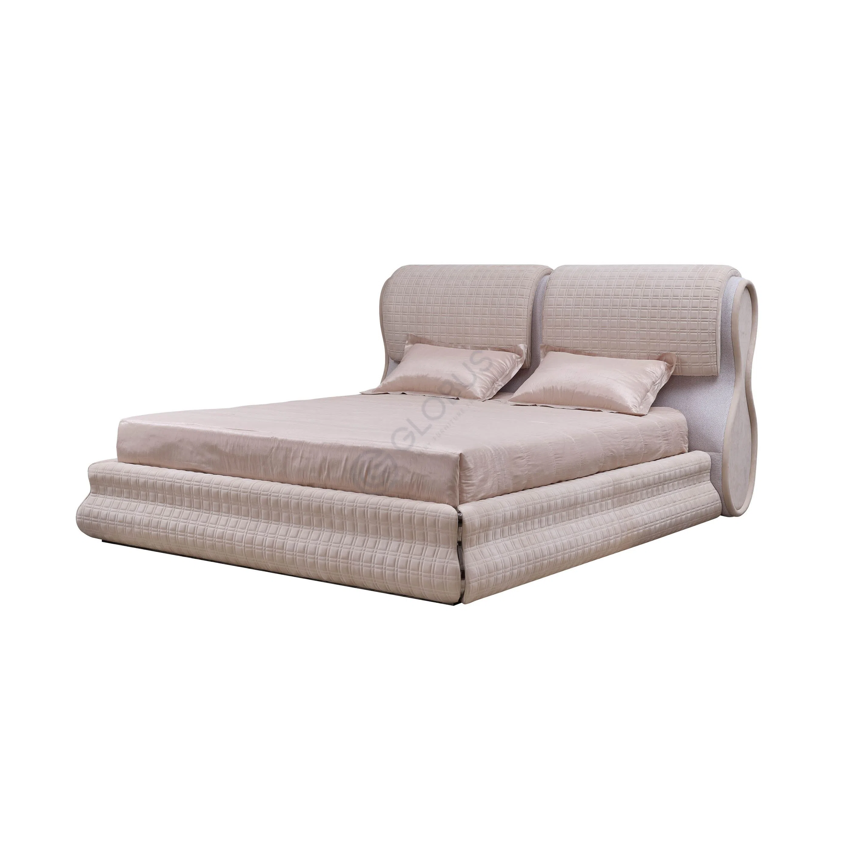 Основа конструкции выполнена из прочных материалов: натурального дерева и качественной фанеры, обеспечивающих долговечность и надежность. Наполнение из натурального пуха дарит исключительный комфорт, создавая ощущение мягкости и уюта. Обивка сочетает приятную на ощупь ткань с акцентами из деликатной замши, а элементы из полированной нержавеющей стали подчеркивают премиальное исполнение и внимание к деталям.