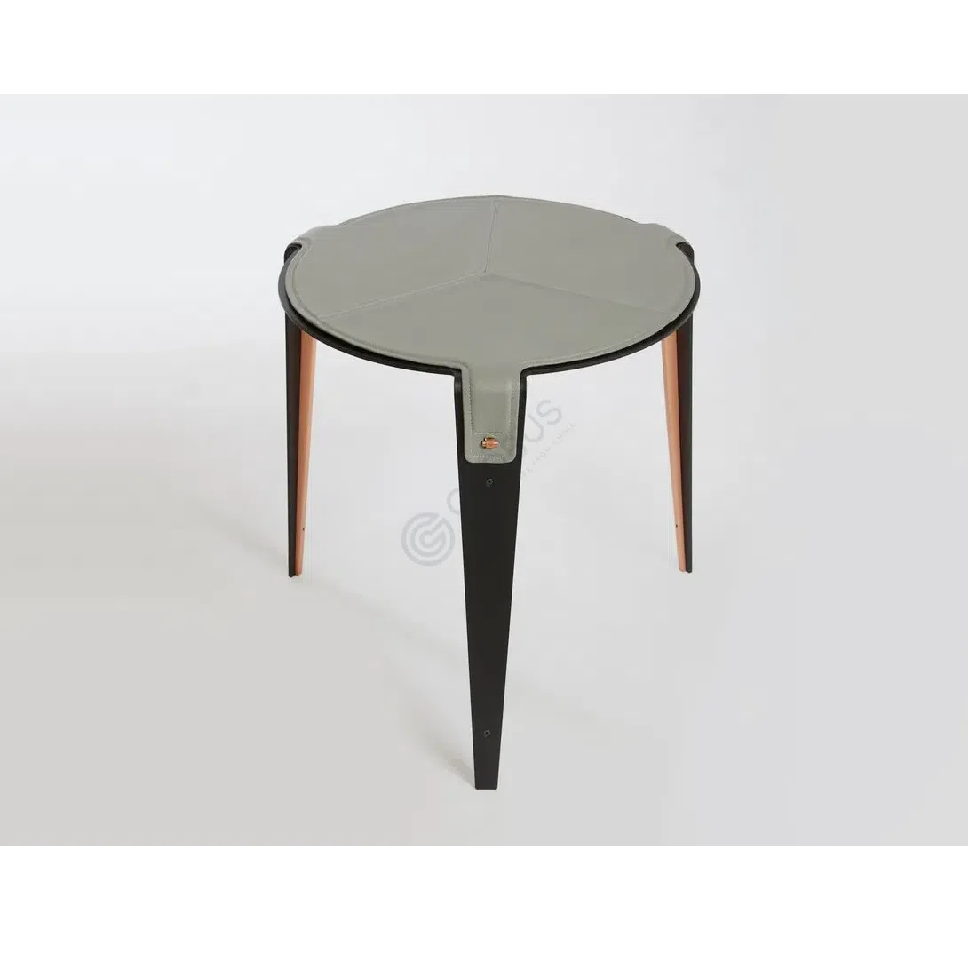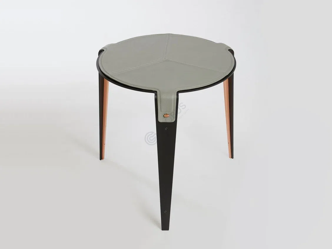 Столешница изделия выполнена с отделкой из нежной замши, что придает поверхности особую мягкость и глубину. Визуальное и тактильное богатство этого материала создает атмосферу уюта и роскоши. Контраст текстур подчеркивает внимание к деталям и высокий уровень исполнения.