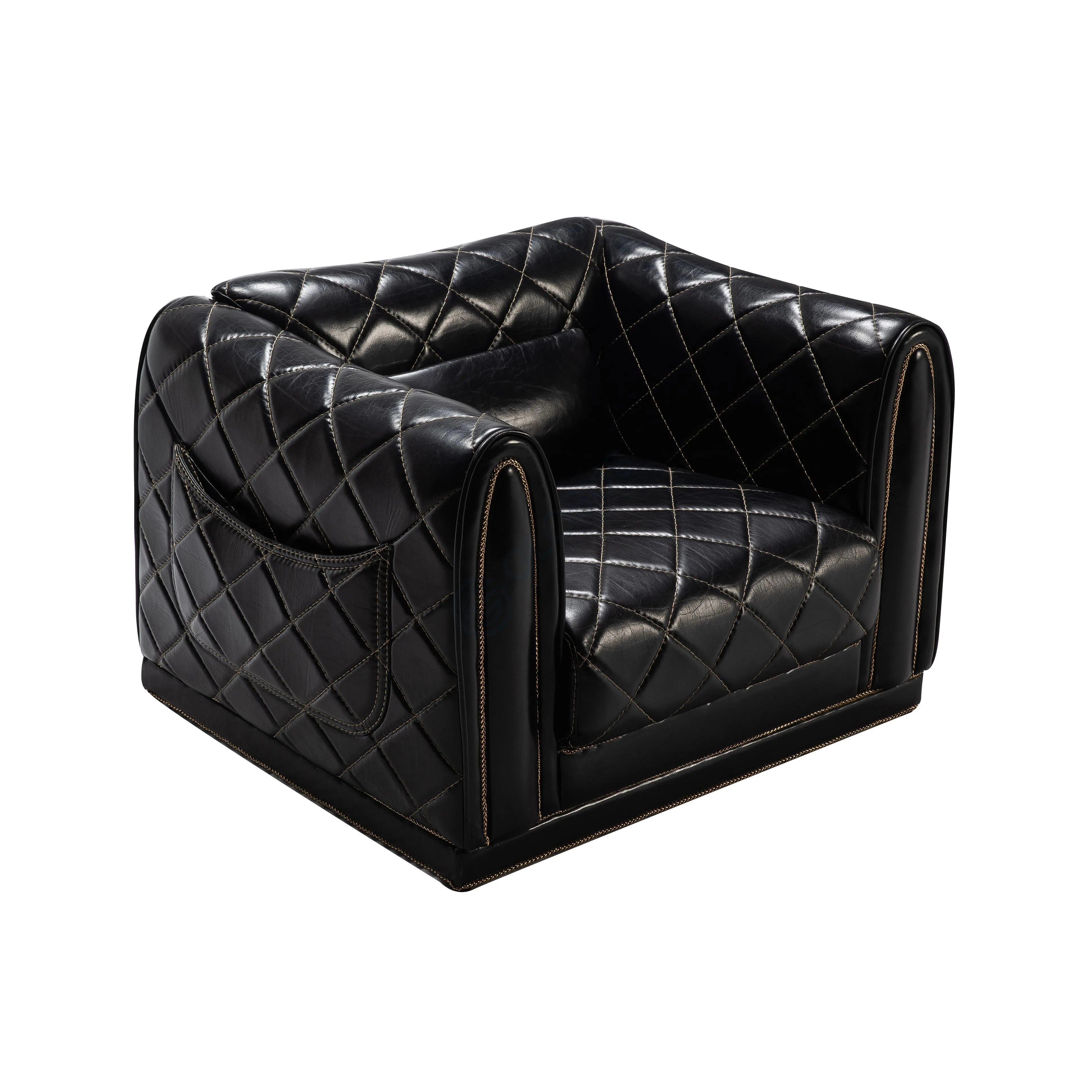 Поверхность украшает выразительная ромбовидная стежка, добавляющая фактуры и глубины дизайну. Эта деталь, в сочетании с объемными формами боковин и спинки, формирует запоминающийся и цельный образ, подчеркивая внимание к каждой линии.