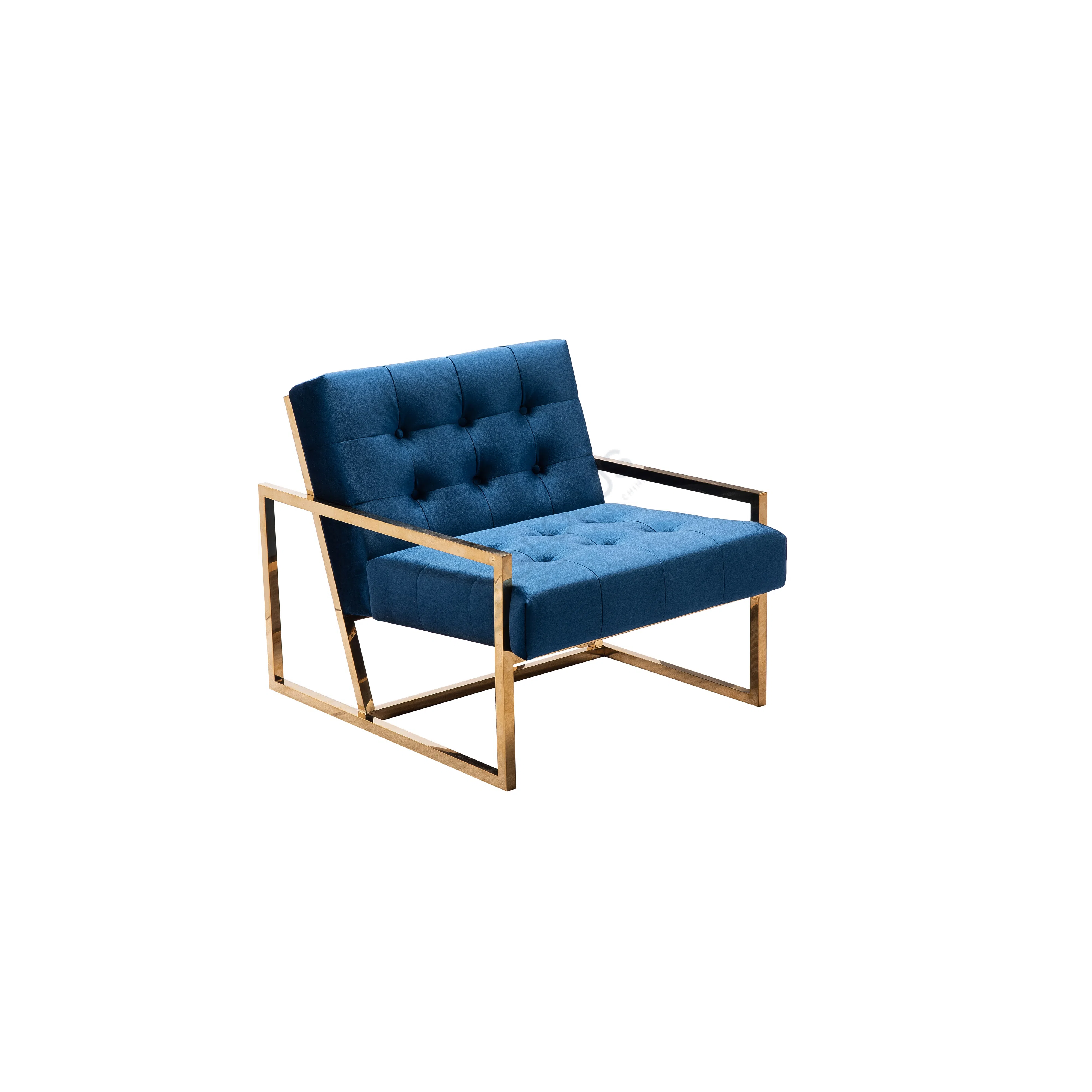 Основа предмета мебели выполнена из прочных материалов, таких как натуральное дерево и фанера, гарантируя надежность и долговечность конструкции. Изюминкой дизайна является легкий, но устойчивый каркас из полированной нержавеющей стали золотистого цвета. Эти геометрические элементы не только обеспечивают прочность, но и придают дивану черты стиля Ар-деко, гармонично переплетаясь с современными линиями.