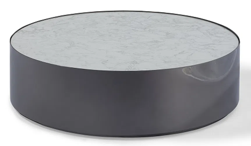 Использование тщательно подобранных материалов подчеркивает высокий статус столика. Основание выполнено из нержавеющей стали с роскошной полированной поверхностью, отражающей свет и добавляющей глубину. Столешница, созданная из искусственного мрамора, привносит элемент природной красоты и изысканности, предлагая тактильно приятную и визуально интересную текстуру.