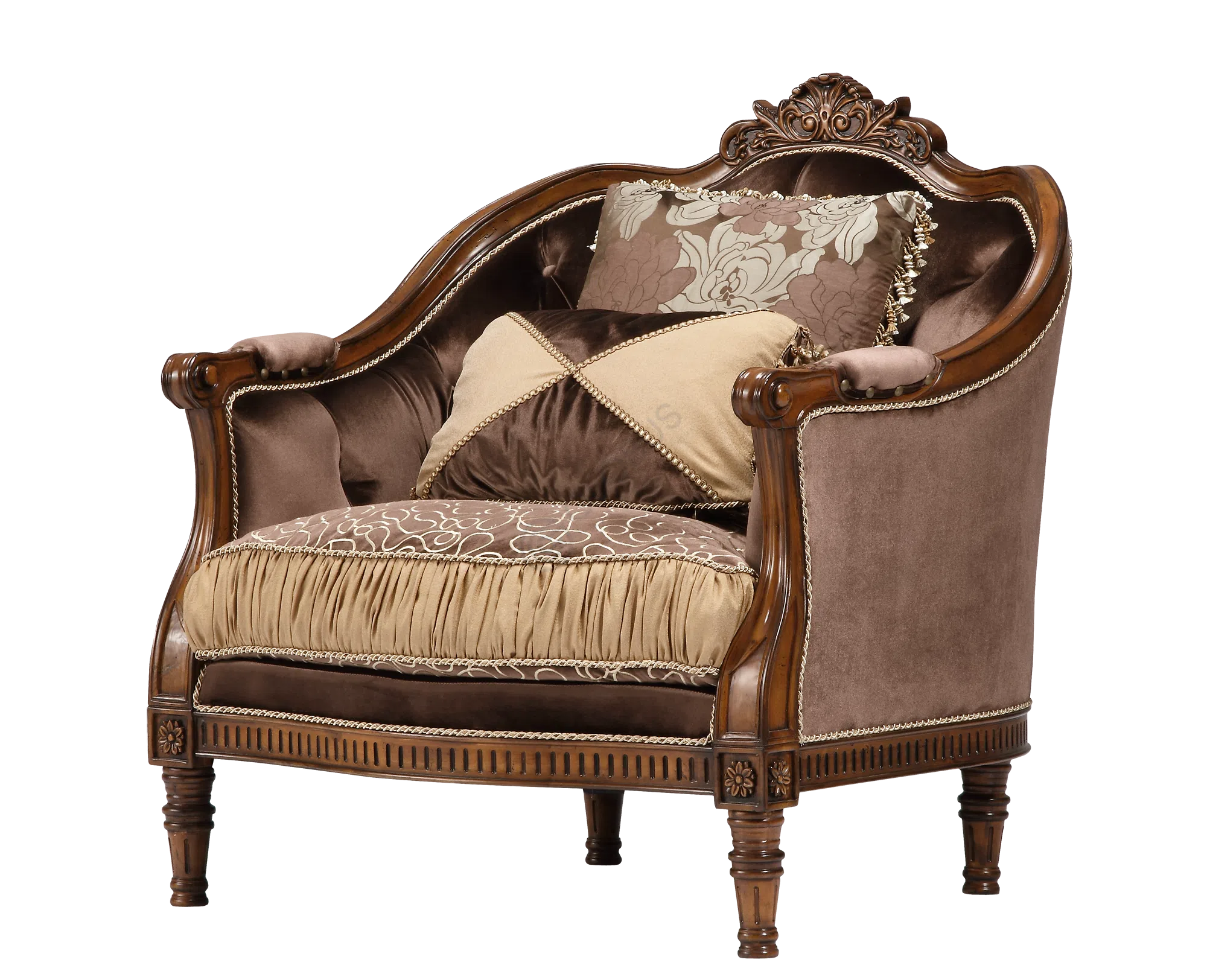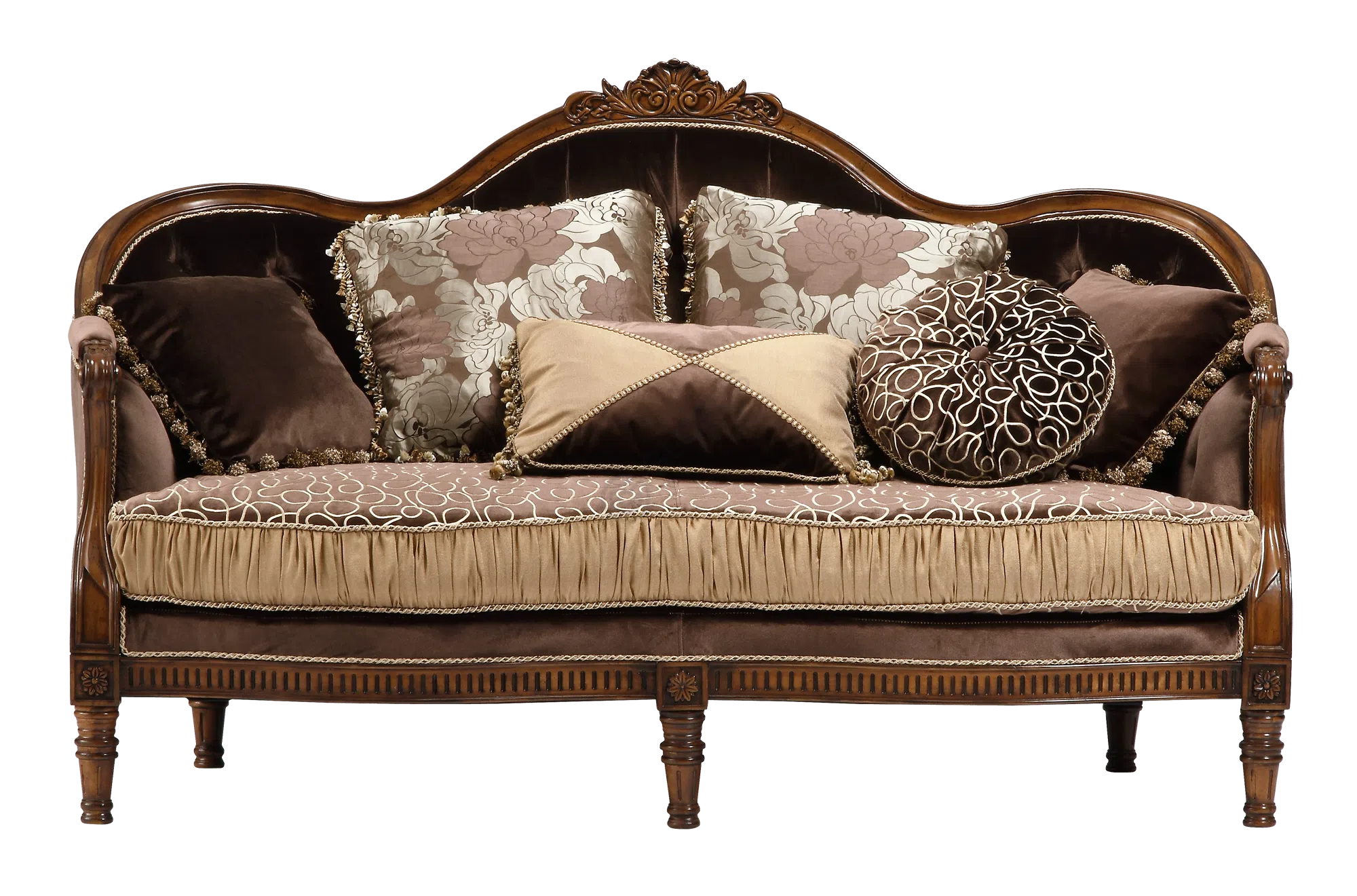 Диван представляет собой воплощение утонченной европейской классики. Его изящные очертания и благородный облик привносят атмосферу дворцовой роскоши и непреходящей элегантности в любое пространство.
