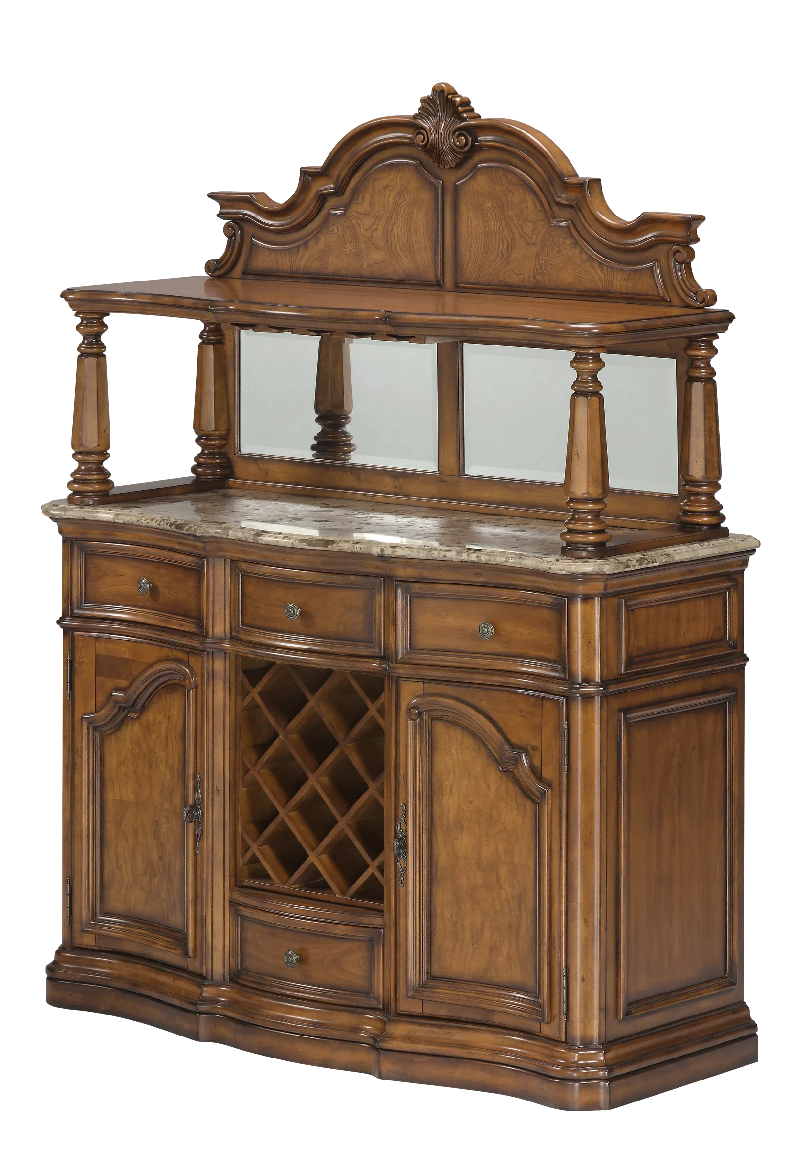 Размеры этого изделия тщательно продуманы для максимального удобства использования. Вместительные отсеки предоставляют достаточно места для хранения посуды, столовых приборов и других предметов. Центральная часть серванта украшена решеткой для вин, что делает его не только практичным, но и идеальным решением для тех, кто ценит возможность представления своей коллекции. Зеркальная спинка и стеклянные элементы добавляют изделию легкости и элегантности, а также визуально расширяют пространство.