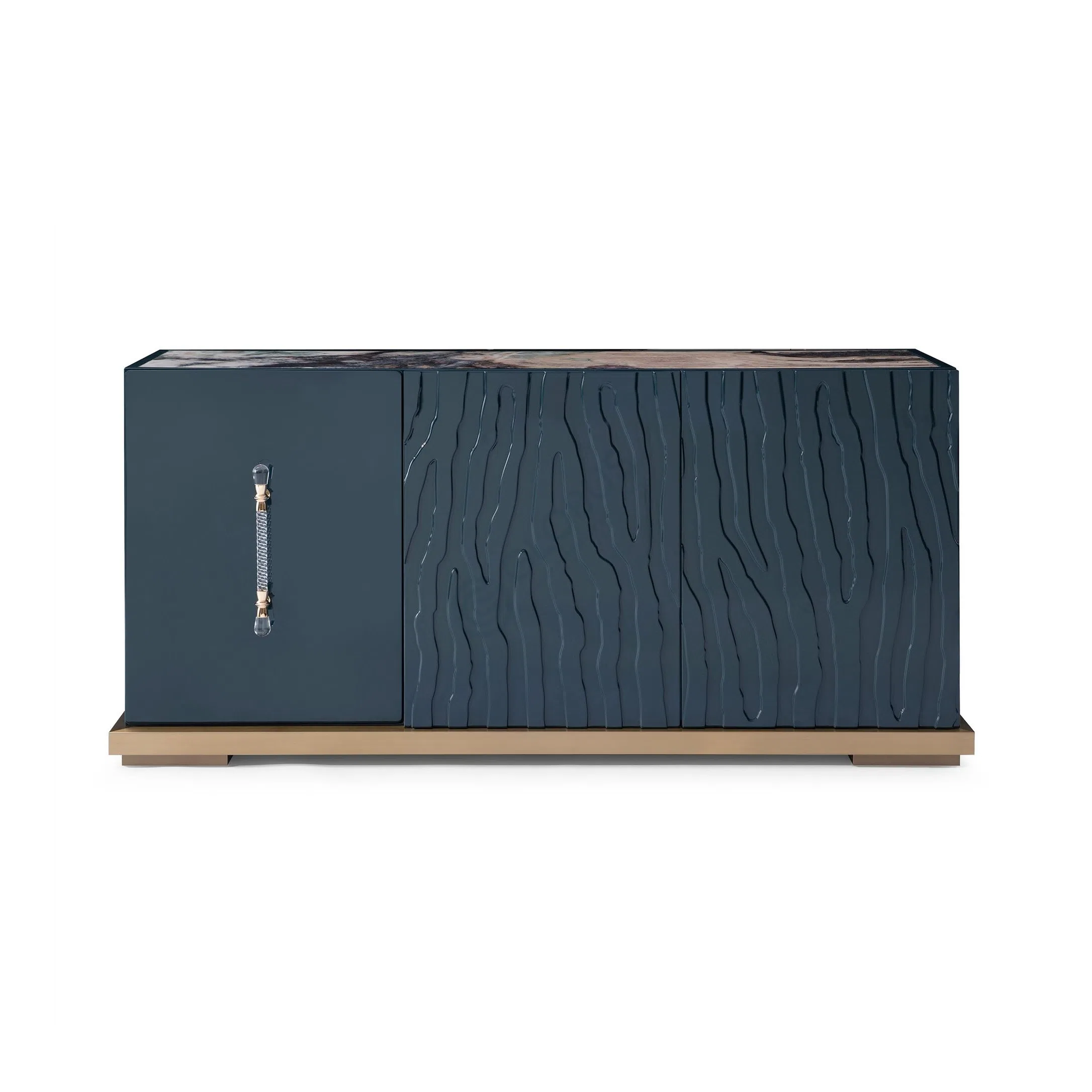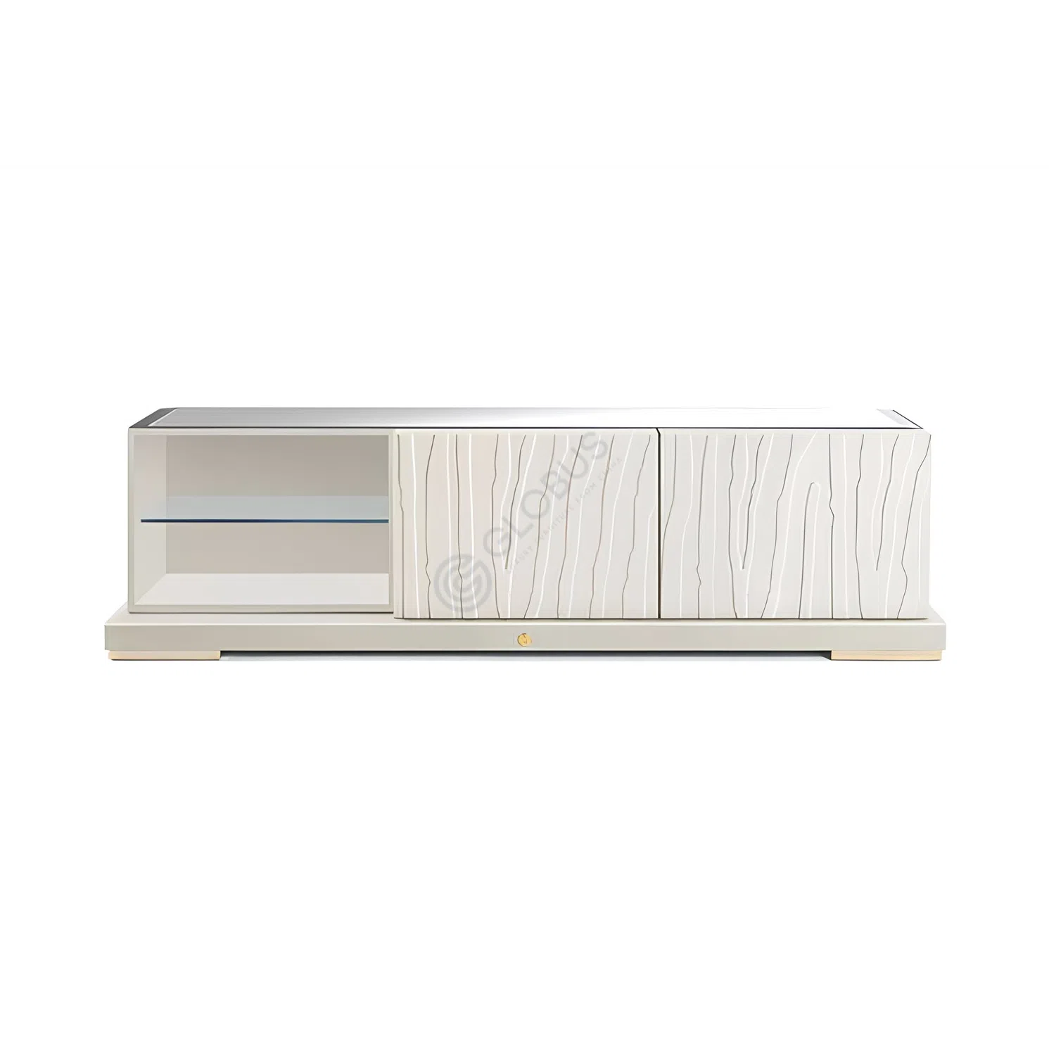 Столешница представляет собой настоящее произведение дизайна. Круглая форма обрамлена кантом, повторяющим отделку основания. Центральная часть выполнена из зеркала, что придает столику дополнительную глубину и отражающую способность. Поверхность зеркала украшена уникальным декоративным рисунком, напоминающим изящные трещины или абстрактные линии, добавляя столику художественную ценность.