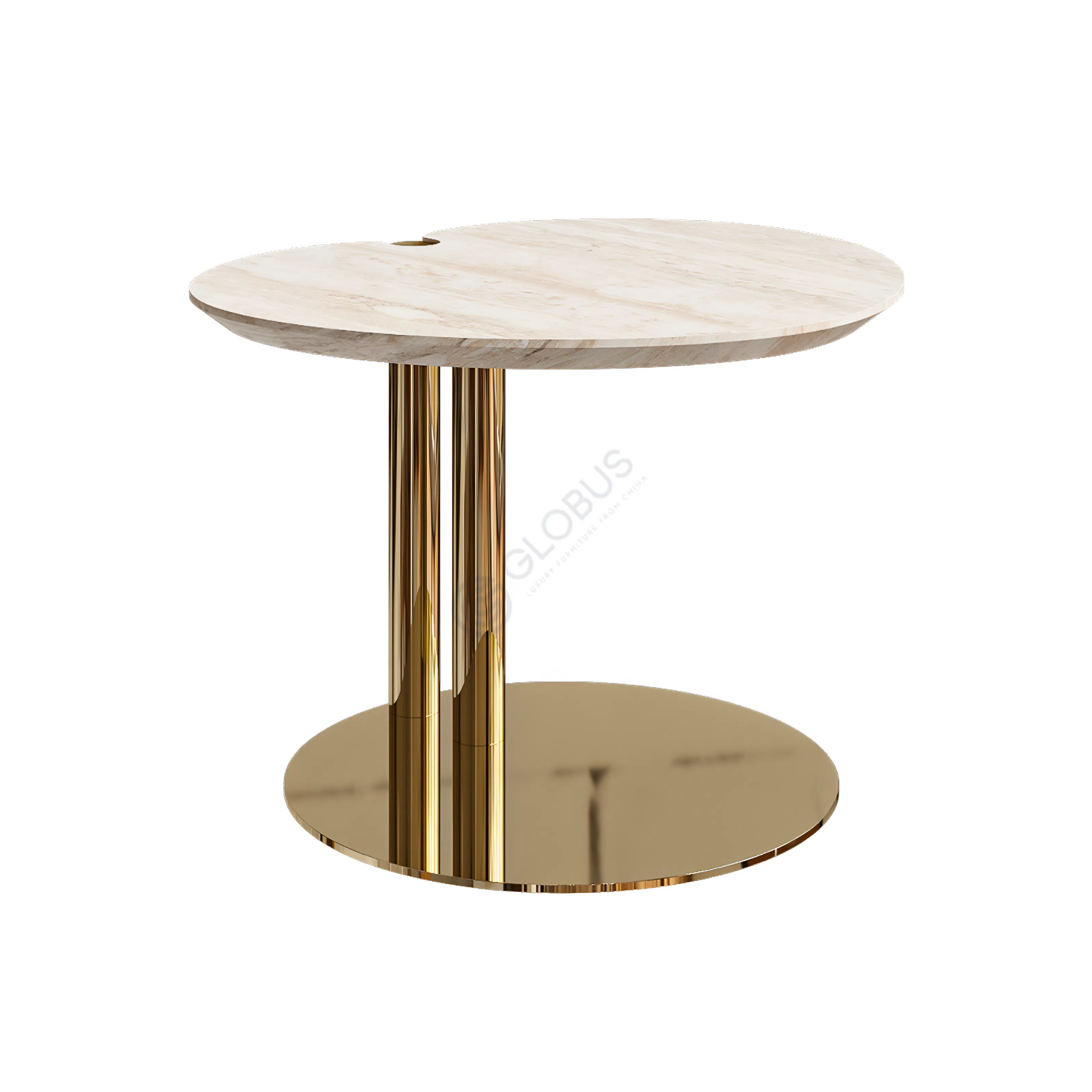 Центральное место в его эстетике занимает столешница из натурального мрамора. Уникальный узор каждой мраморной плиты, тонкие прожилки и благородный оттенок придают поверхности неповторимый характер и глубину. Опоры и основание, выполненные из полированной нержавеющей стали, мягко отражают свет, создавая игру бликов и добавляя изделию легкости. Этот металл, известный своей прочностью и благородным блеском, безупречно дополняет природную красоту камня.