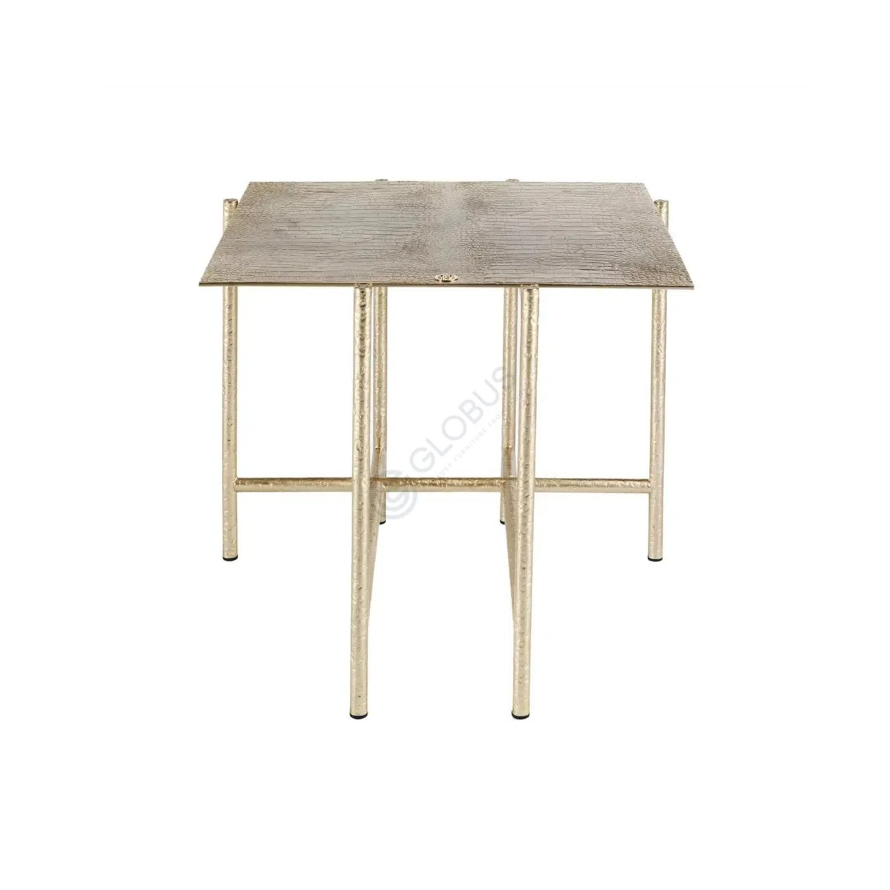 Угловой столик из алюминия сочетает плавные геометрические линии арт-деко и лаконичность современности. Поверхность украшает тиснёный узор, навевающий благородство натуральной кожи и тонко отражающий свет.