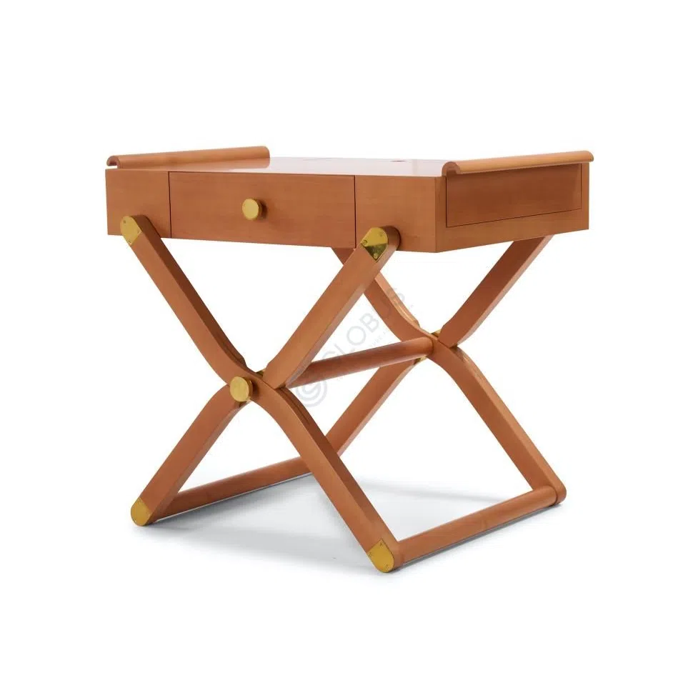 Изящный силуэт этого пуфа сразу привлекает взгляд, демонстрируя мастерство исполнения и продуманный дизайн. В его основе лежит гармоничное сочетание высококачественных материалов: теплота натурального дерева в каркасе прекрасно дополнена строгим блеском акцентов из нержавеющей стали. Сиденье, выполненное из шорно-седельной кожи, обеспечивает не только долговечность и прочность, но и удивительное тактильное ощущение, приглашая насладиться комфортом.