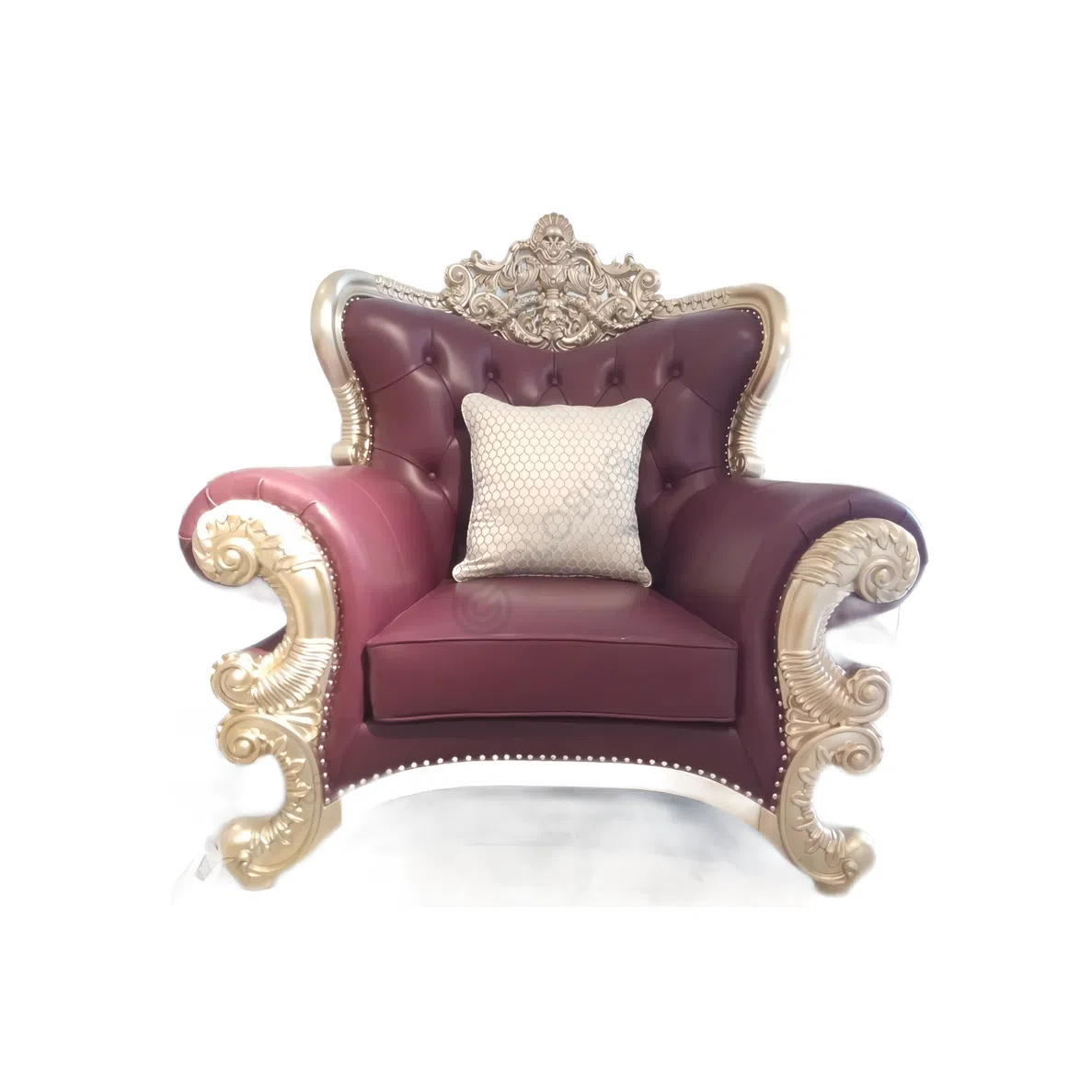 Этот диван воплощает в себе величие и изящество европейской классики. Его глубокий, насыщенный бордовый оттенок обивки придает гостиной изысканность и ощущение благородства. Изящная форма с роскошной резьбой на каркасе и подлокотниках делает этот предмет мебели настоящим акцентом интерьера.