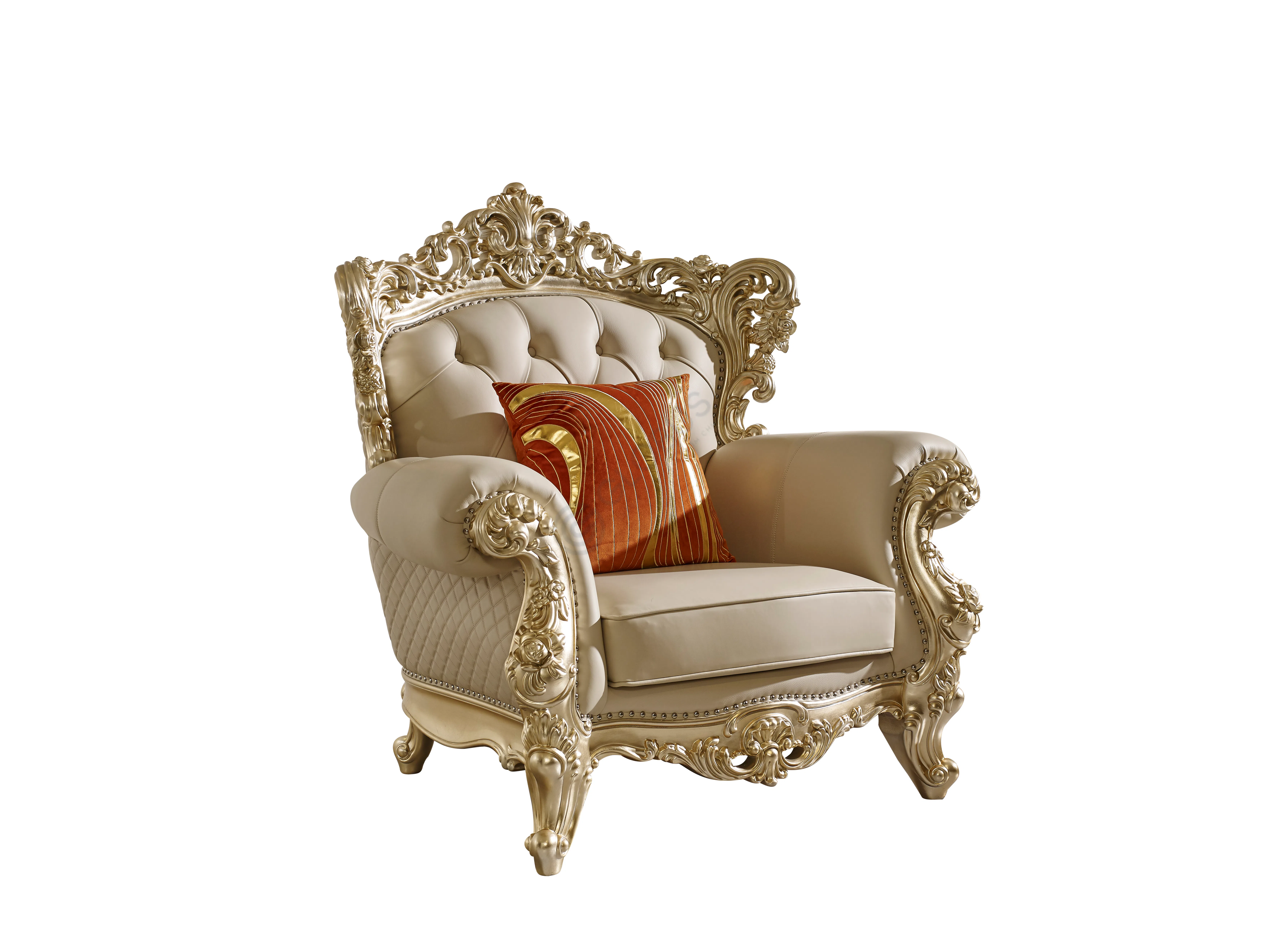Обивка этой модели выполнена из высококачественной кожи или экокожи на микрофибре, предлагая тактильно приятную поверхность и роскошный внешний вид. Мягкие сиденья и спинка с элегантной каретной стяжкой создают ощущение комфорта и приглашают к отдыху. Декоративные подушки дополняют образ, добавляя уют и индивидуальность.