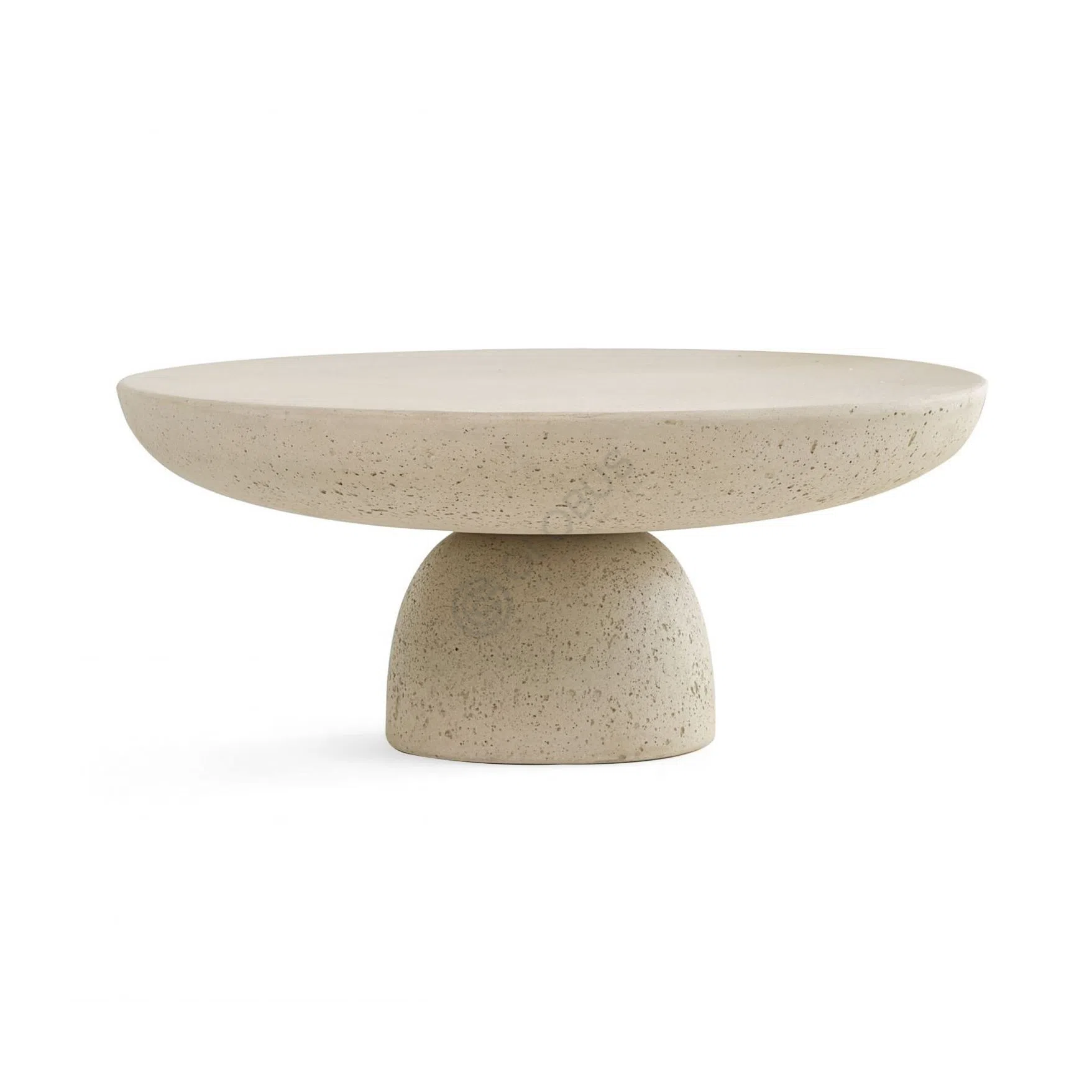 Основание столика выполнено в стильной скульптурной форме, что подчеркивает его изысканный характер. Прочное сочетание благородного травертина с деталями из нержавеющей стали обеспечивает стабильность, долговечность и визуальное равновесие.