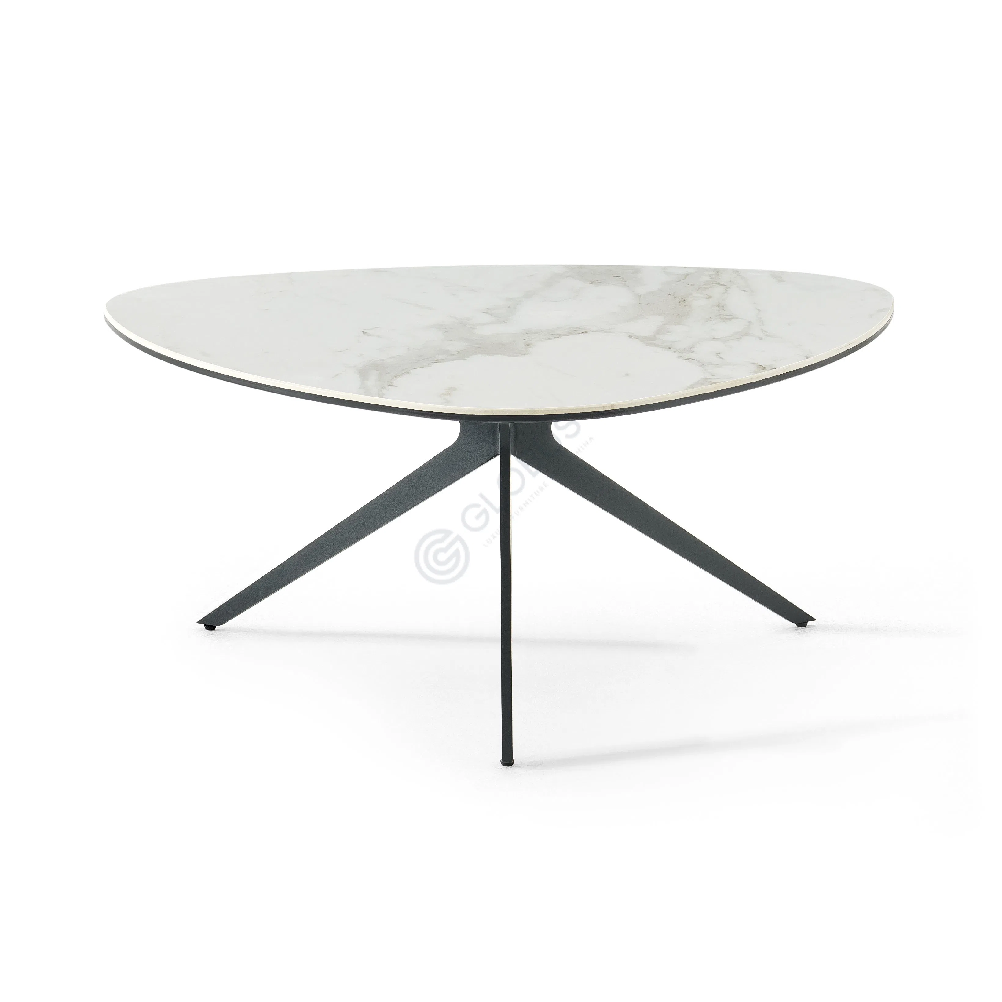 Столешница из керамики имеет гладкую поверхность с естественным оттенком камня. Этот материал известен своей практичностью, так как устойчив к царапинам, пятнам и воздействию высоких температур. Благодаря гармоничному сочетанию керамики и металла столик становится не только функциональным элементом, но и стильным акцентом в обстановке.