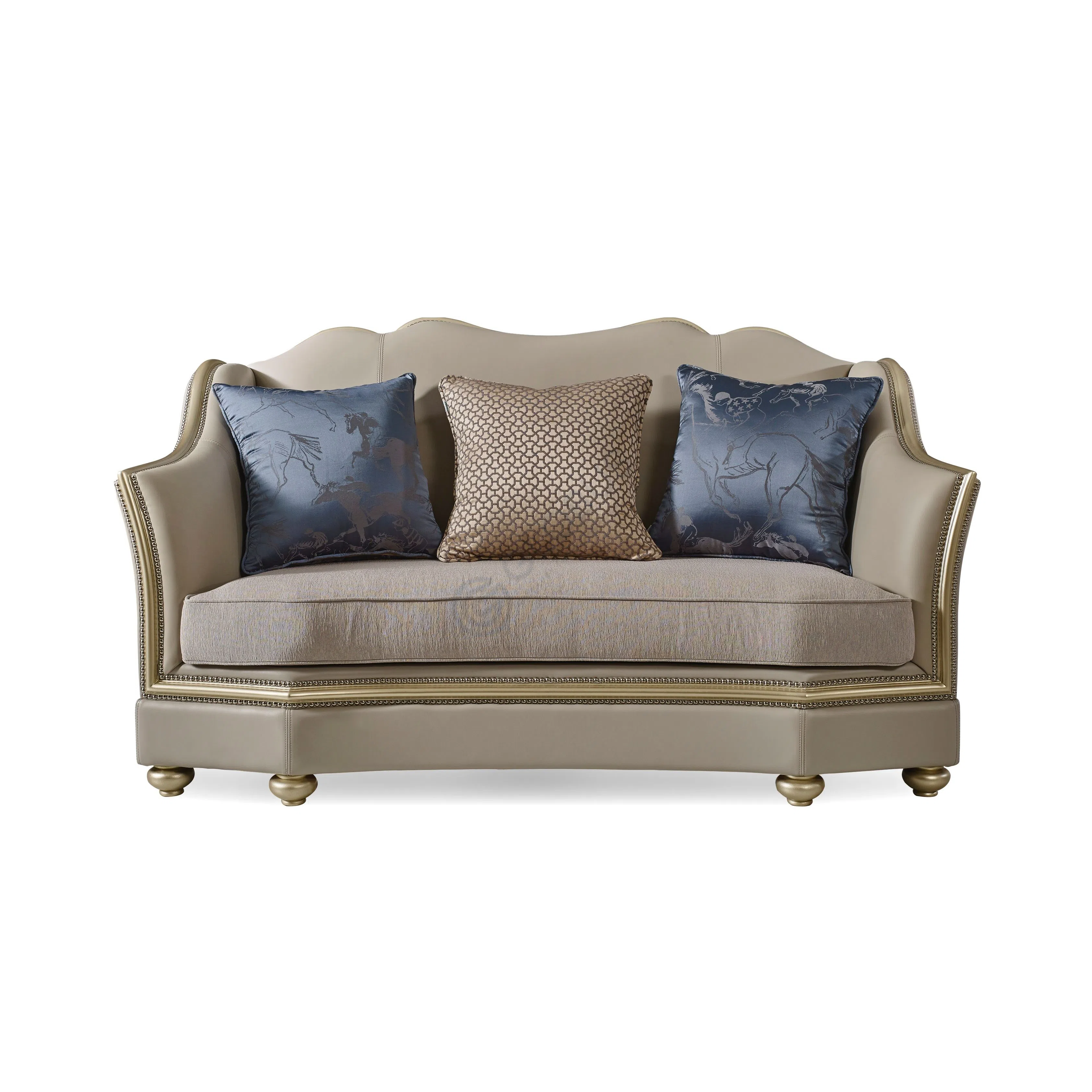 Основа изделия выполнена из натурального дерева и фанеры, обеспечивая прочность и долговечность. Обивка сочетает приятную экокожу на микрофибре и мягкий текстиль, предлагая не только эстетическую привлекательность, но и высокий уровень комфорта. Декоративная отделка по периметру подчеркивает роскошный характер дизайна.